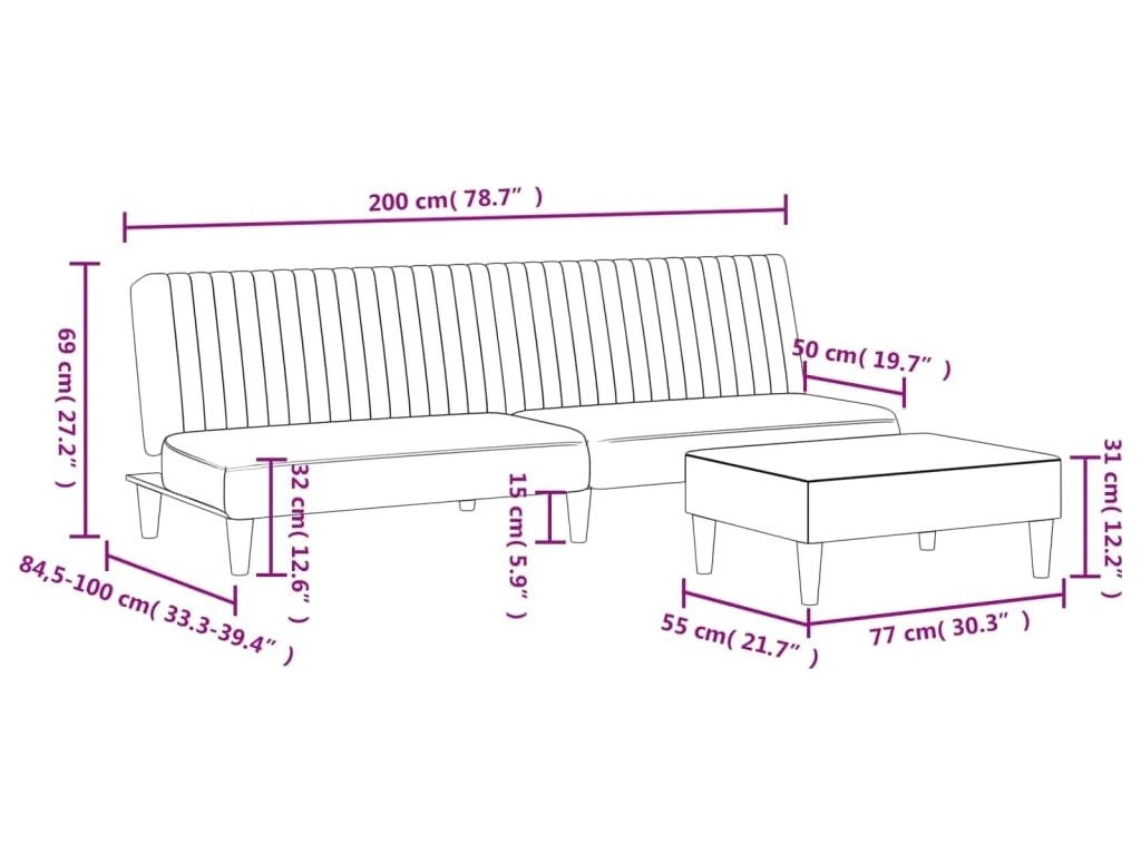 - Celkové rozměry: 200 x 84,5 x 69 cm (Š x H x V)