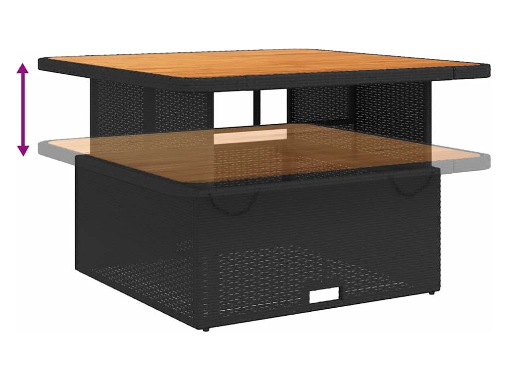 - Nastavitelná deska stolu: Stolní desku lze zvednout tak, aby stůl byl vyšší, takže jej můžete přeměnit z konferenčního stolku na jídelní. Skvěle se hodí pro návštěvy nebo pro stolování venku.