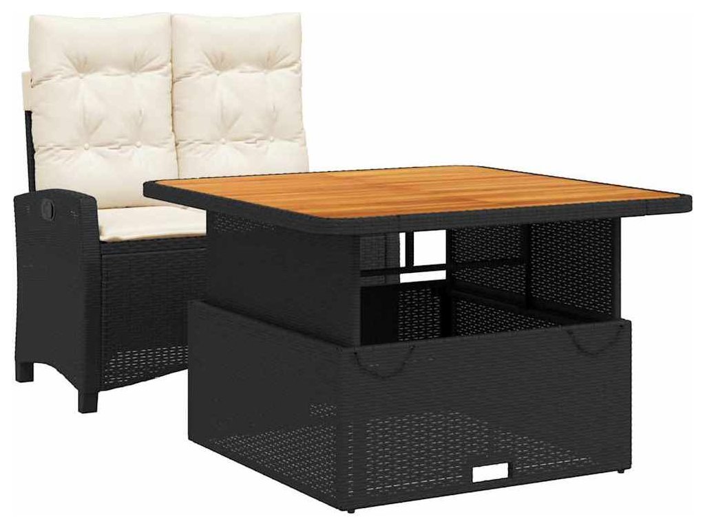2dílný zahradní jídelní set s poduškami černý polyratan [3277379]