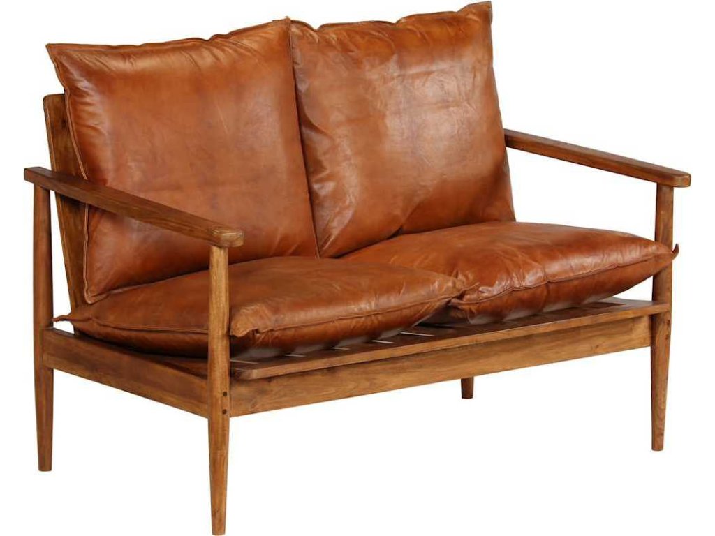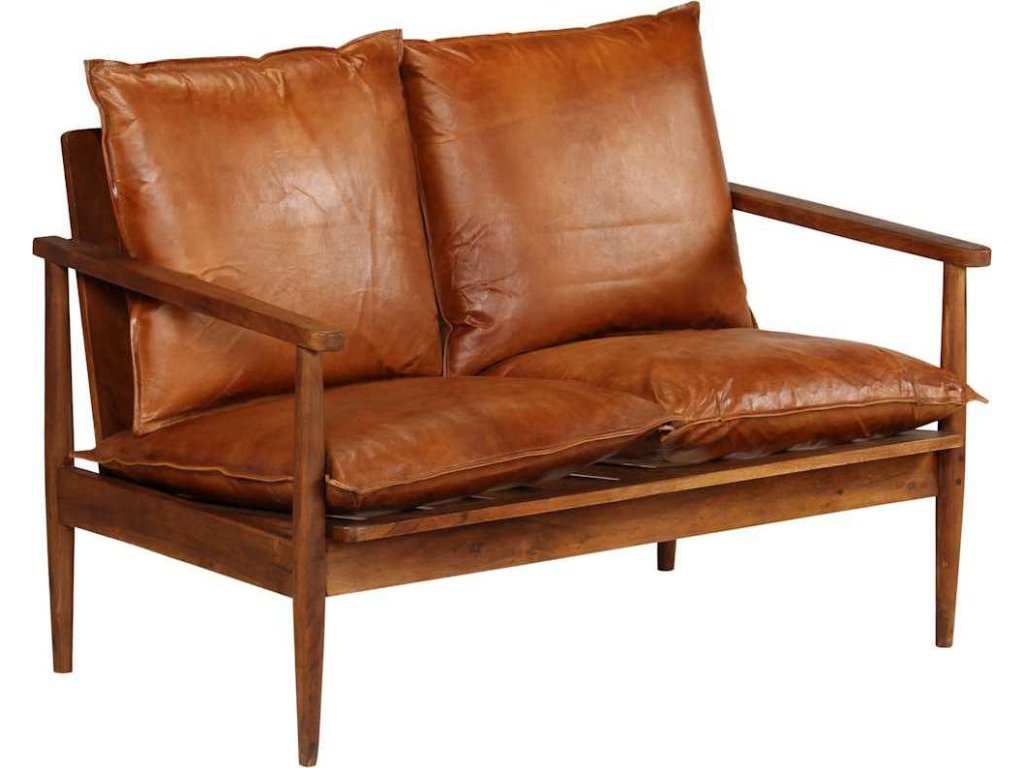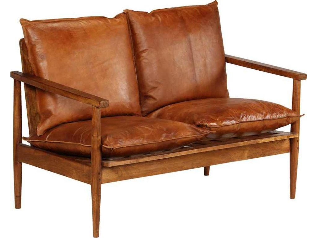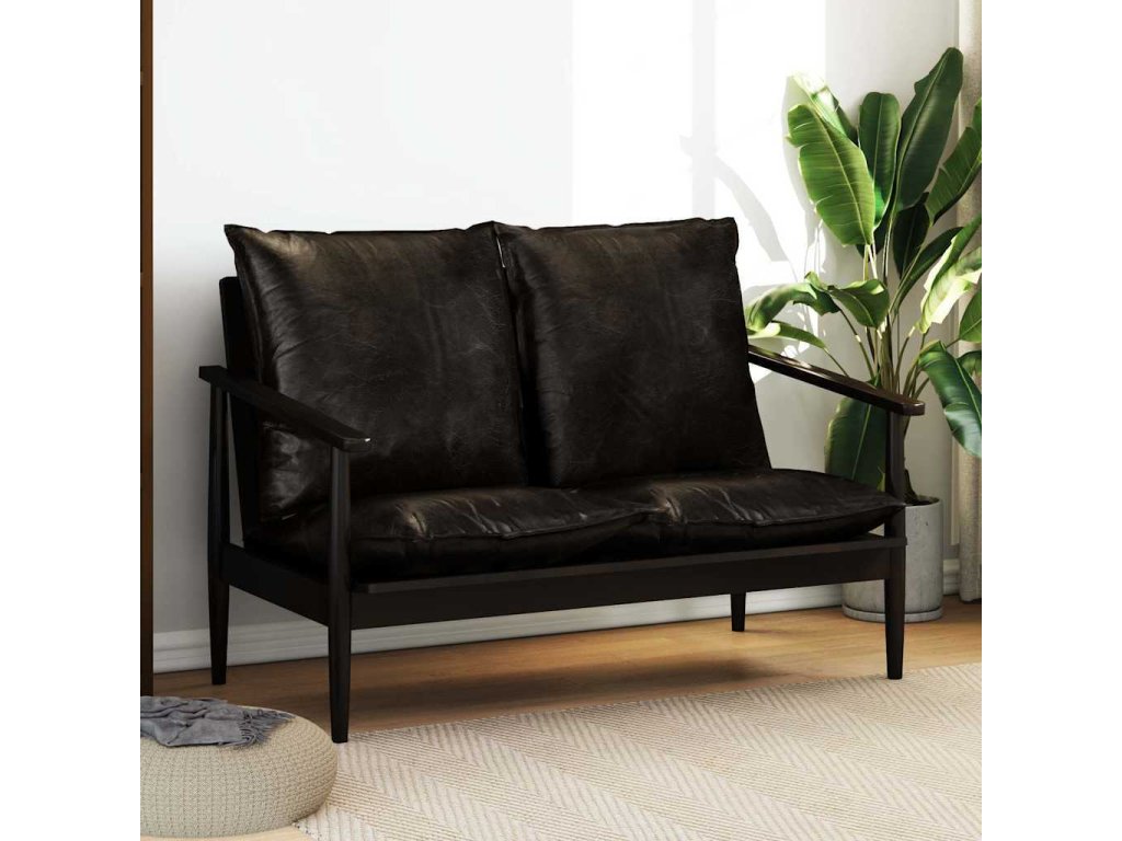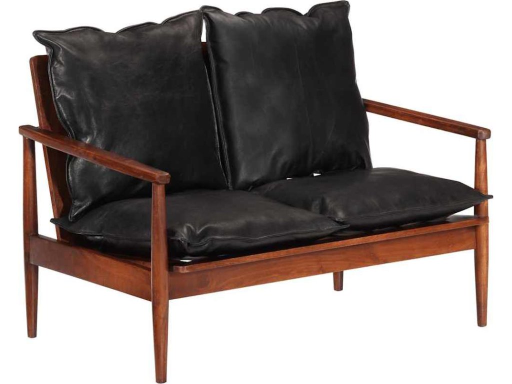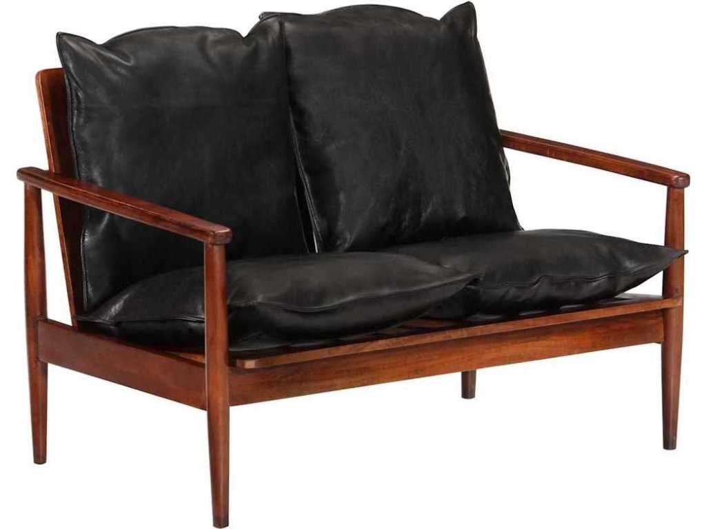 2místná pohovka pravá kůže s akáciovým dřevem [246483]