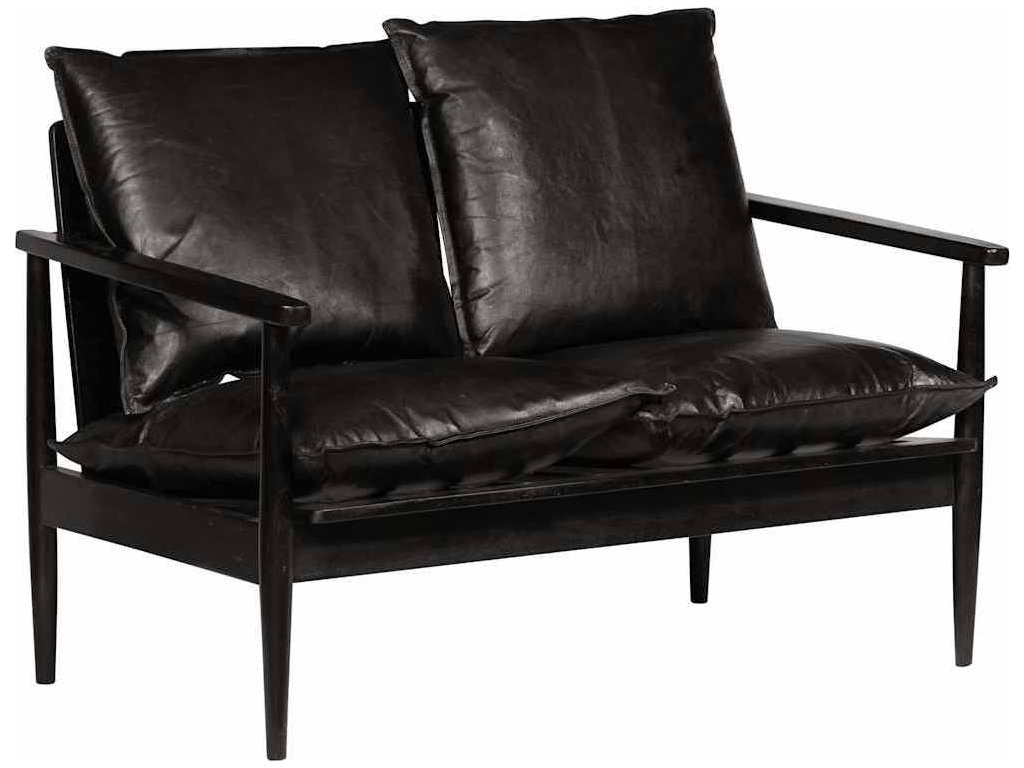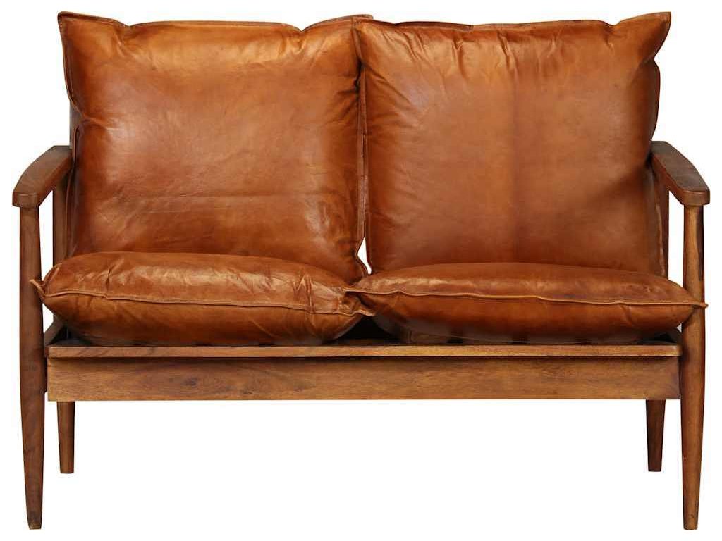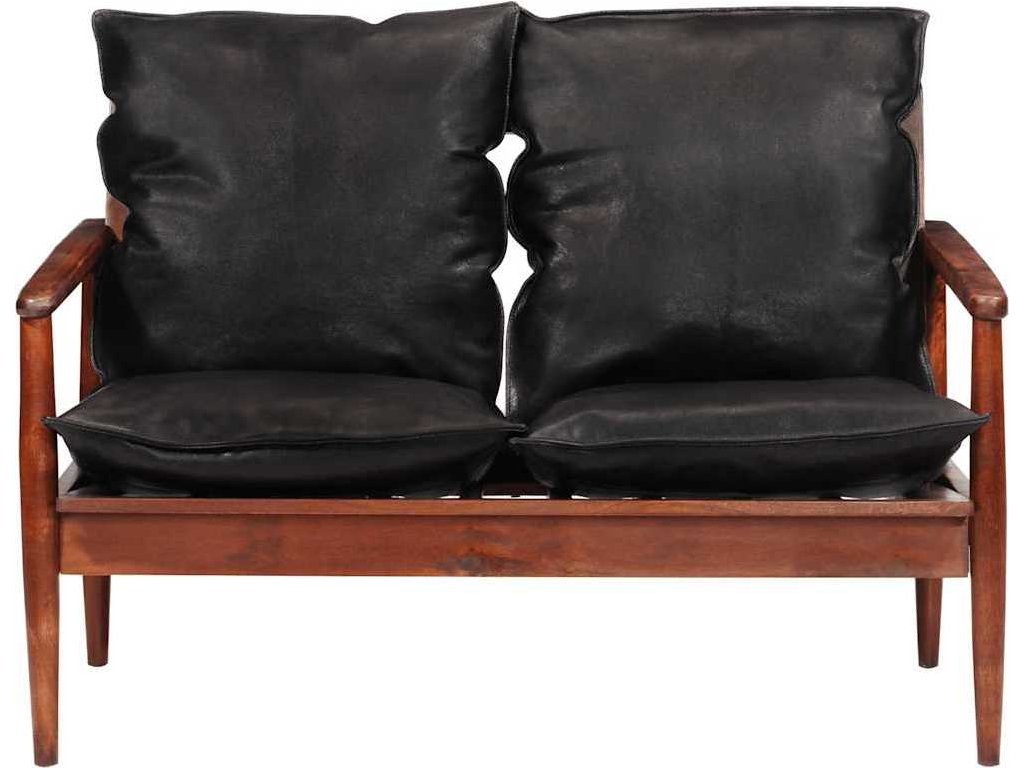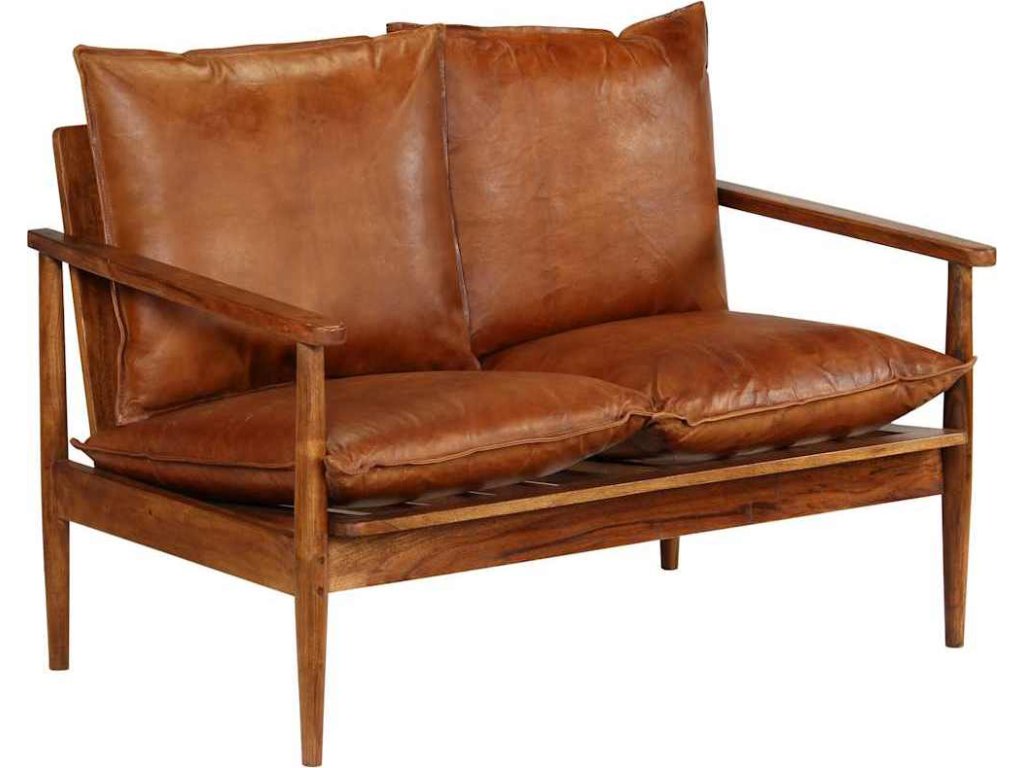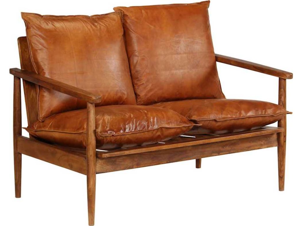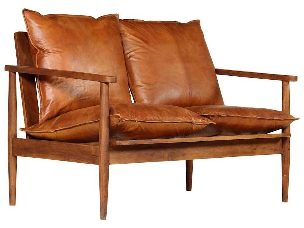 2místná pohovka pravá kůže s akáciovým dřevem [246483]