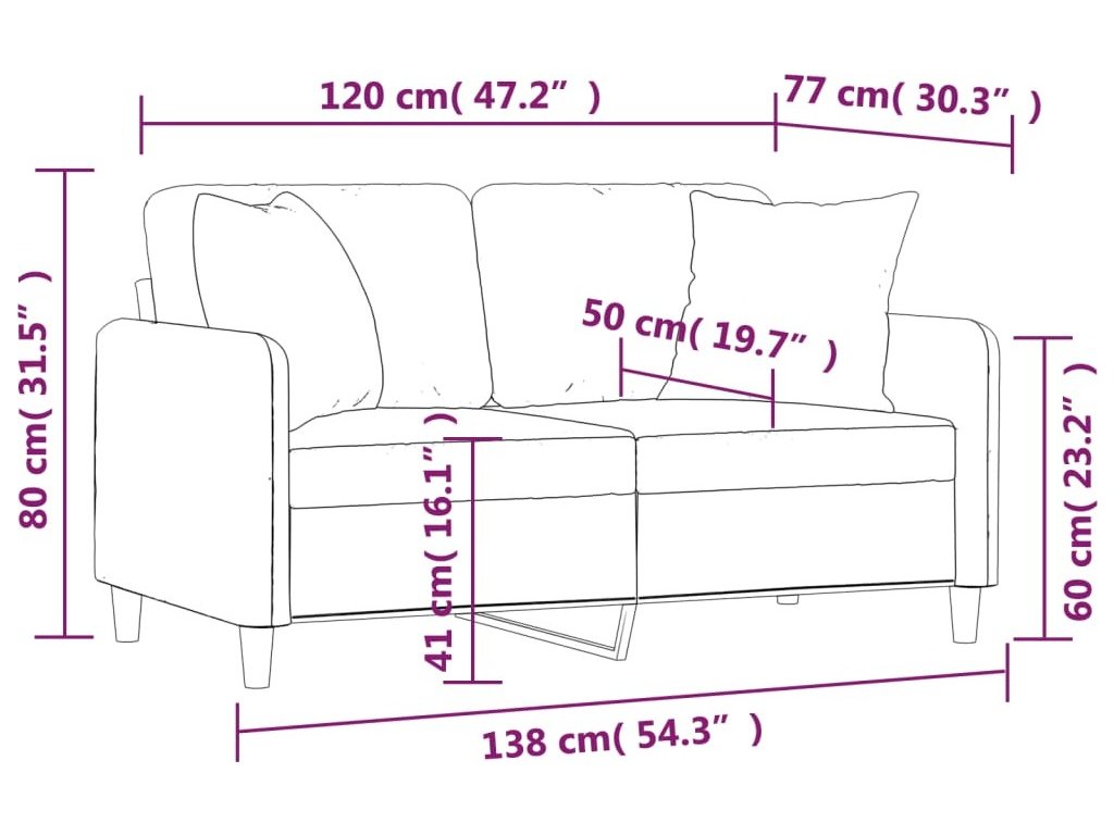 2místná pohovka s polštáři 120 cm textil [3200908]