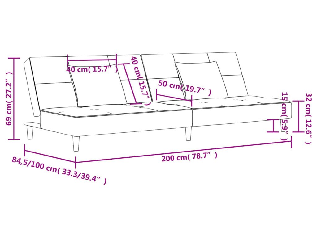 - Funkce 2 v 1: Tuto rozkládací pohovku rychle a snadno přeměníte z pohovky na postel a naopak. Každou ze dvou samostatných částí opěradla můžete sklopit částečně nebo zcela dolů, čímž si vytvoříte ideální místo pro zdřímnutí nebo postel pro dva.