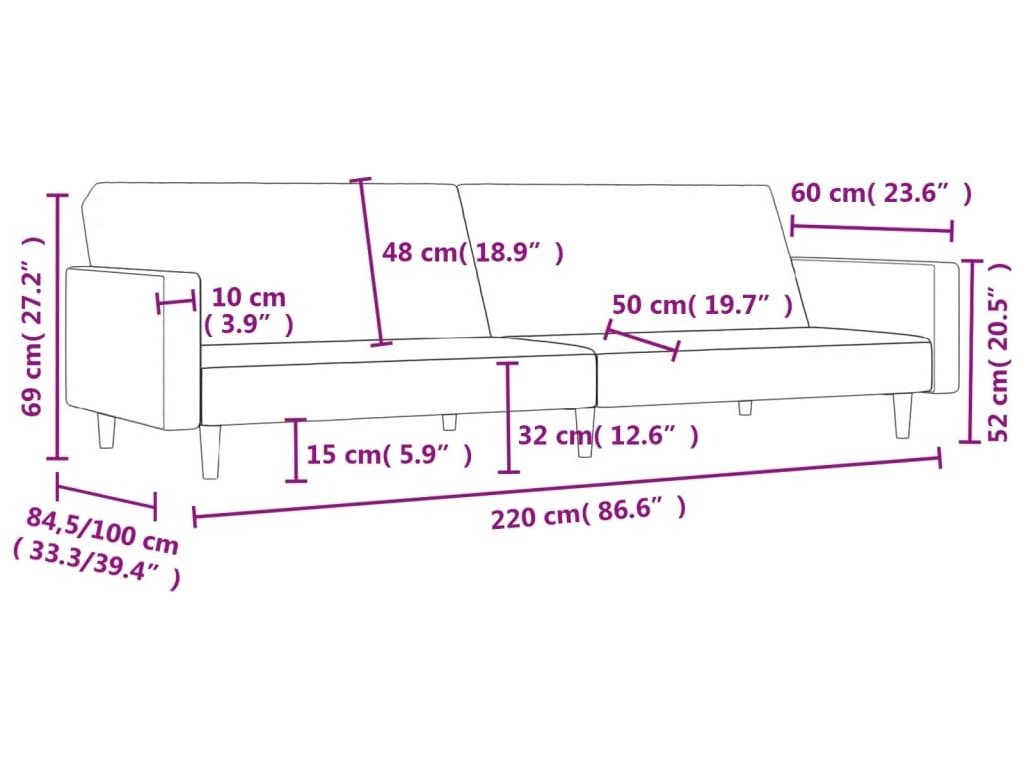 - Celkové rozměry: 220 x 84,5 x 69 cm (D x Š x V)