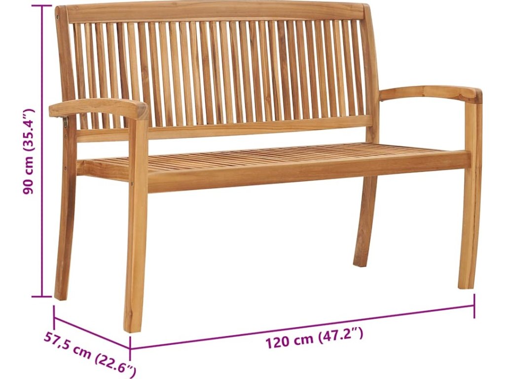 2místná stohovatelná zahradní lavice 120 cm masivní teak [49388]