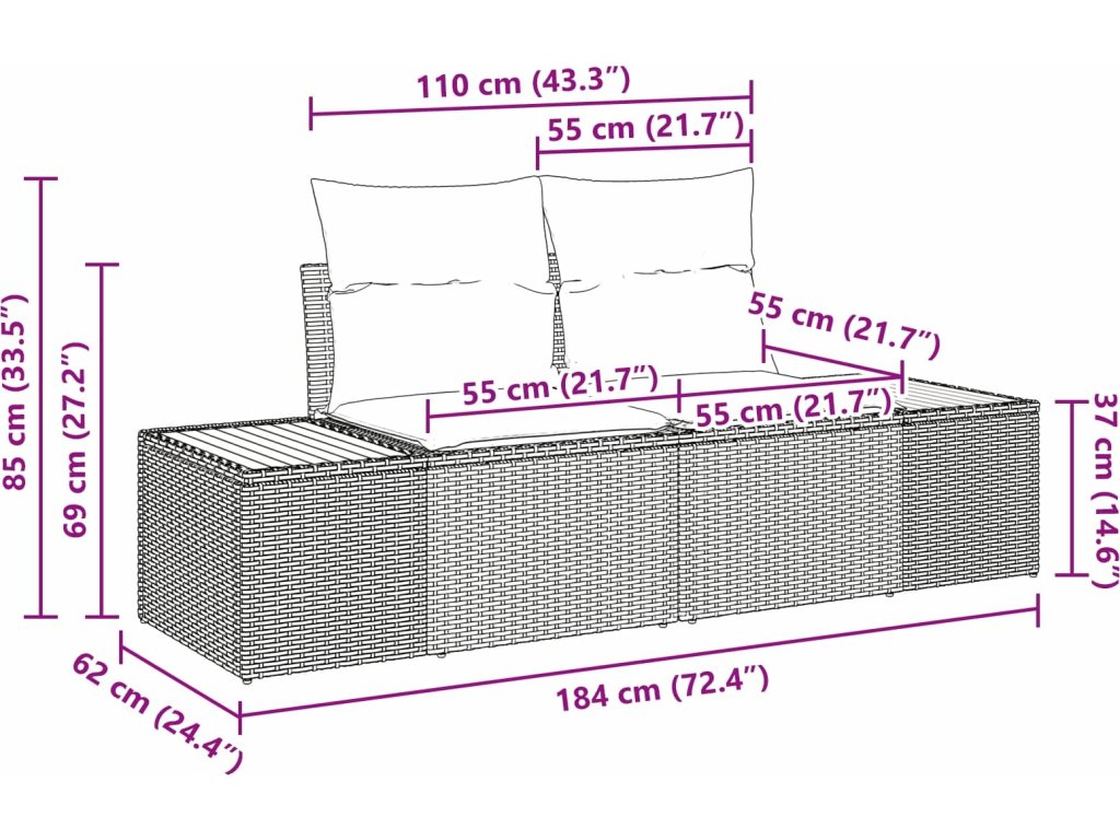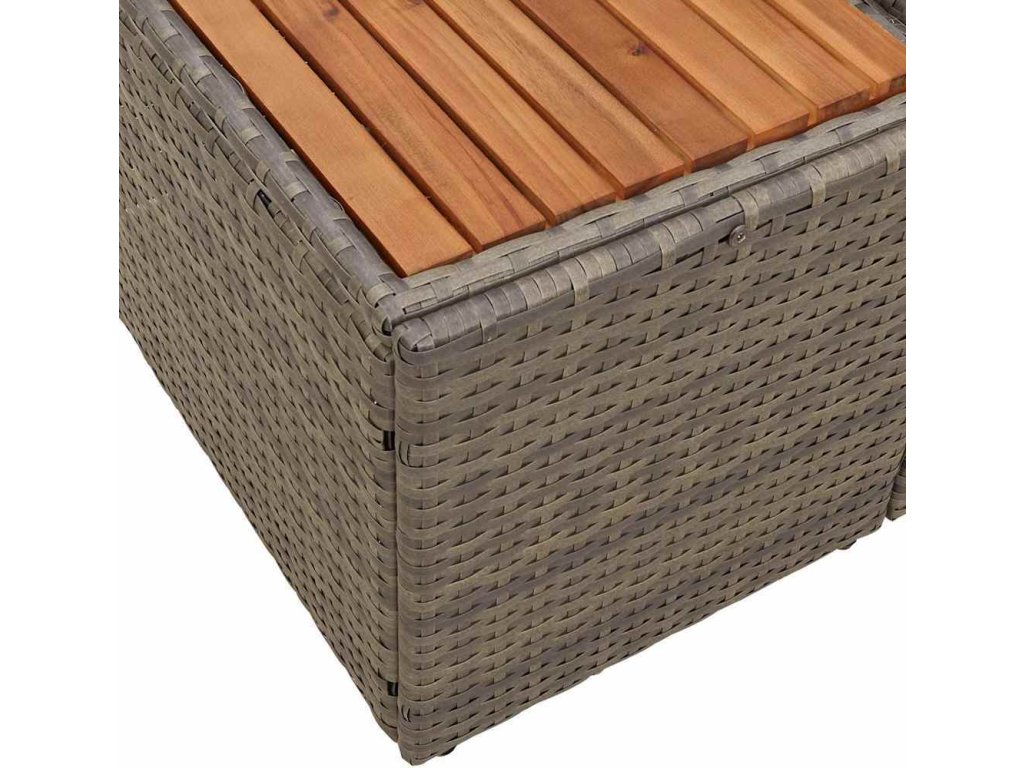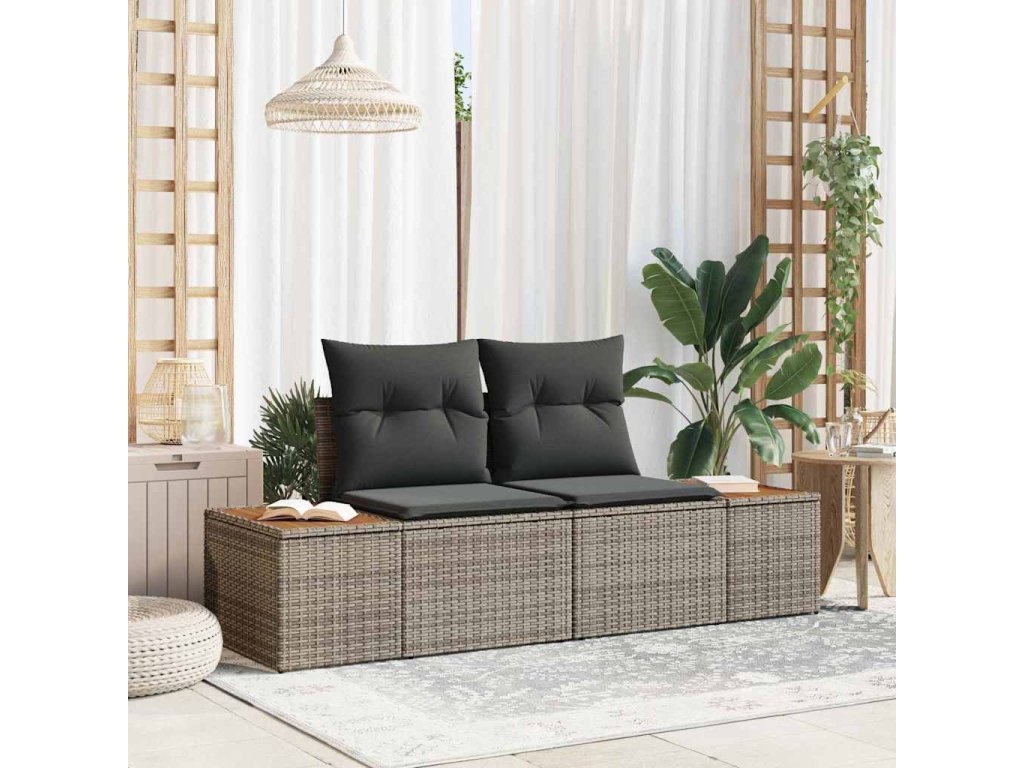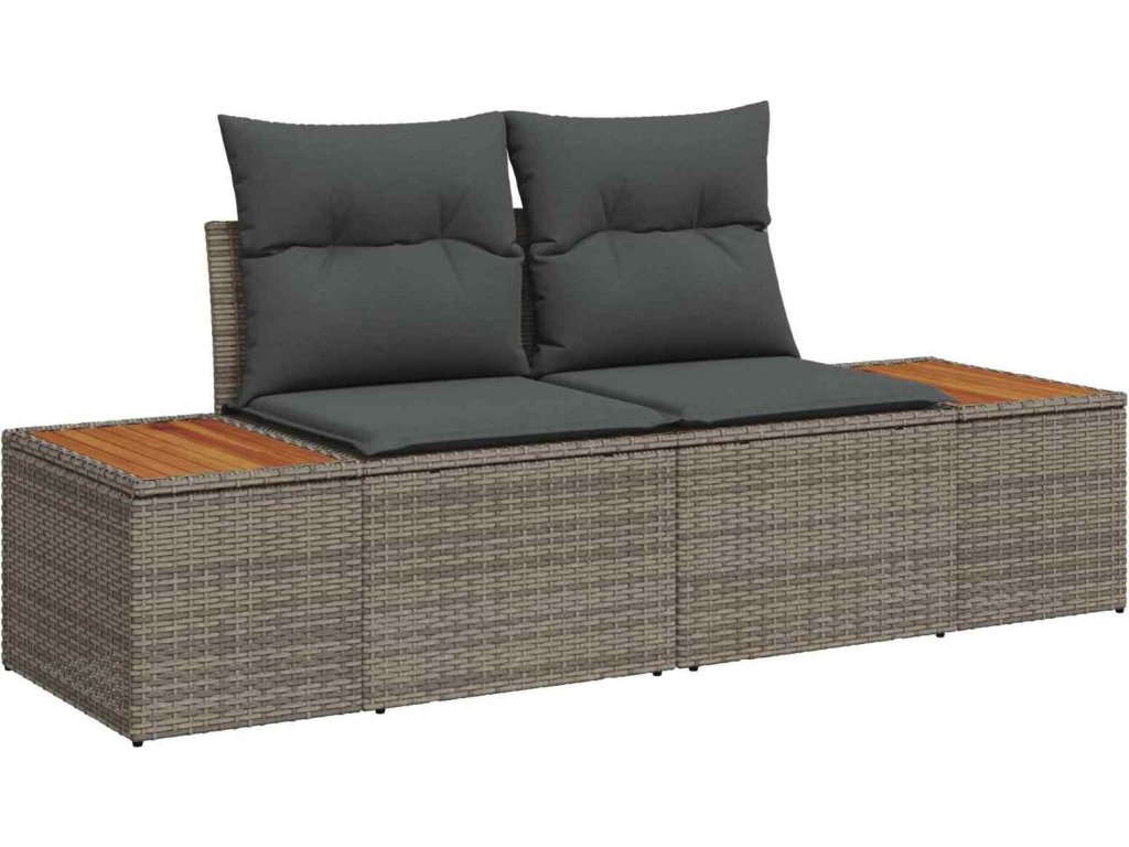- Poly ratanová konstrukce - Hlavní materiál je poly ratan, co zvládá počasí. Chrání před UV paprsky a dává stylový pletený vzhled, který se hodí k moderním venkovním prostorům. Ratan také udržuje pohovku v dobrém stavu, takže nabídne kouzlo i spolehlivost.