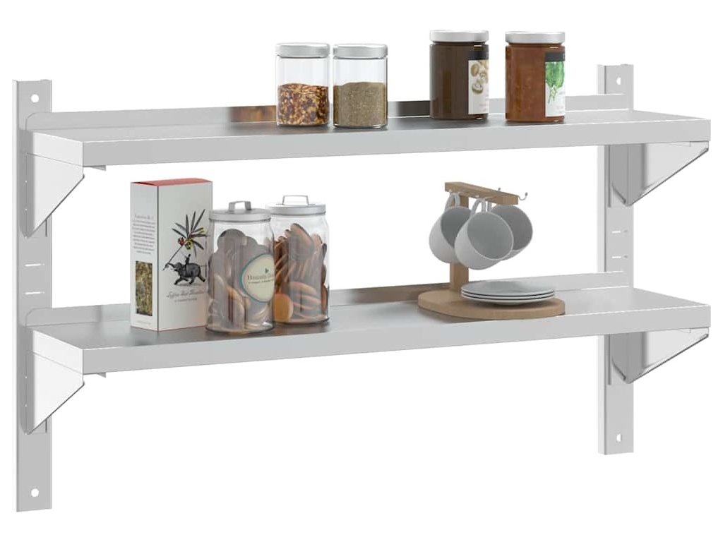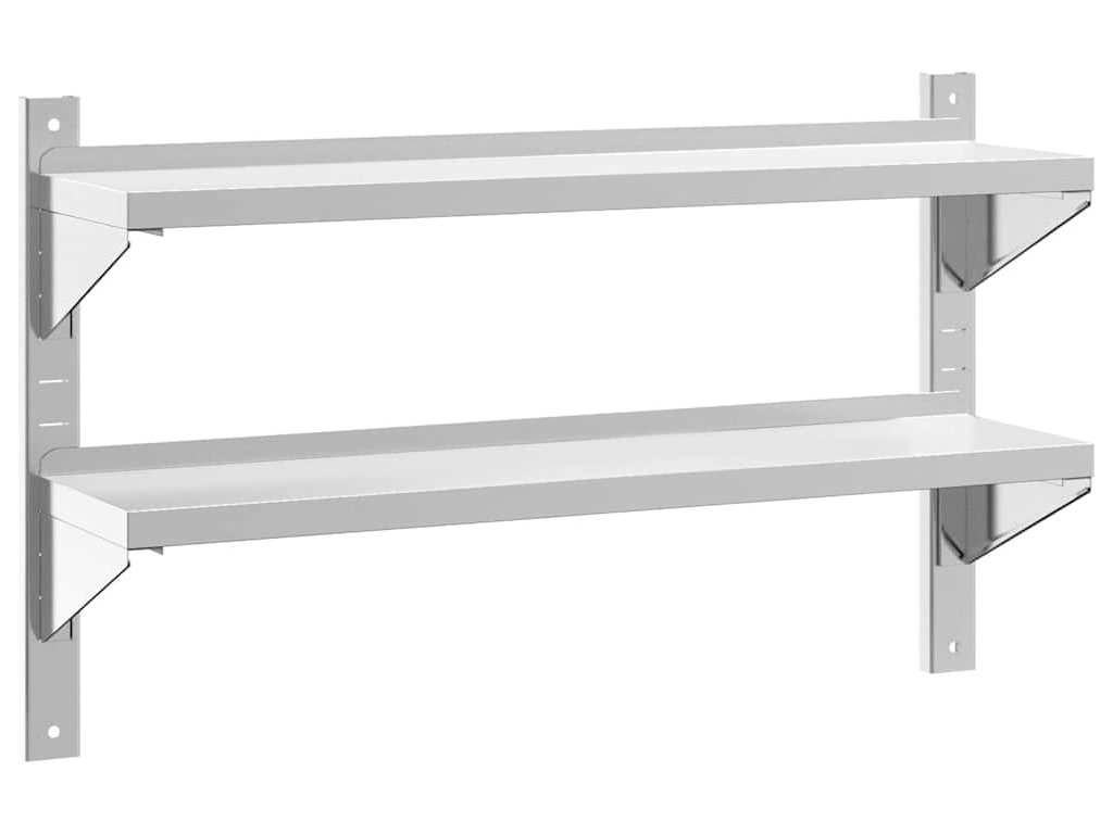 2patrová nástěnná police 100x23,5x60 cm stříbrná nerezová ocel [30311]