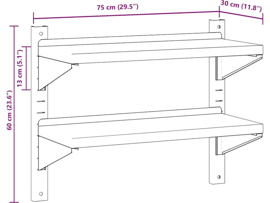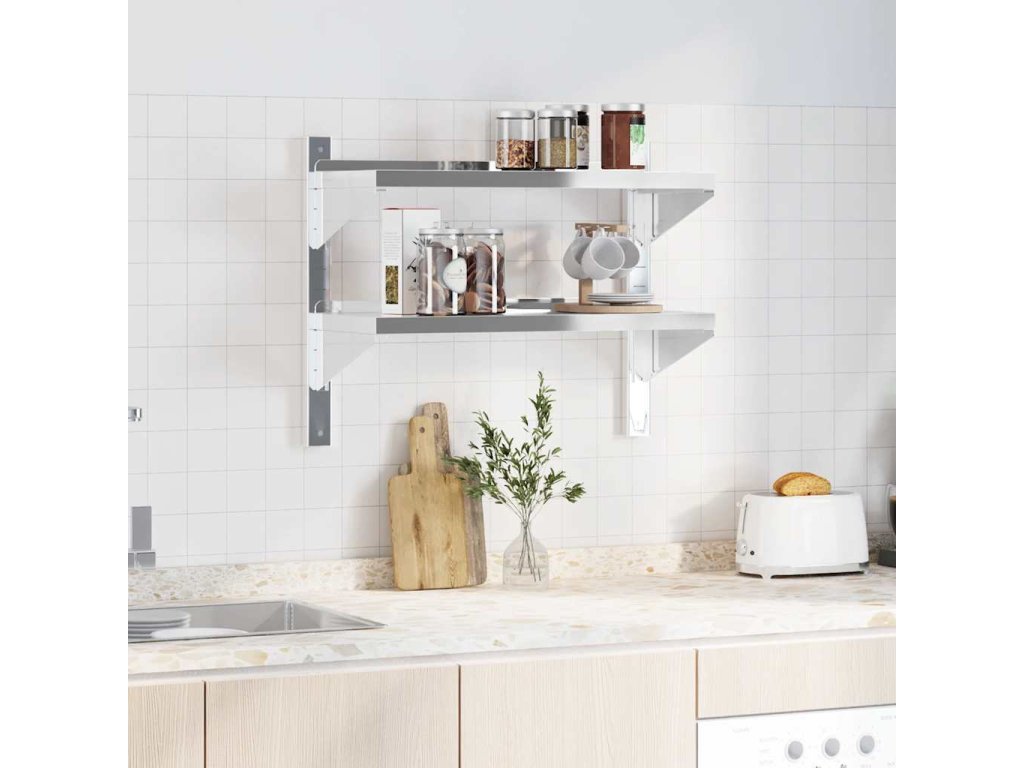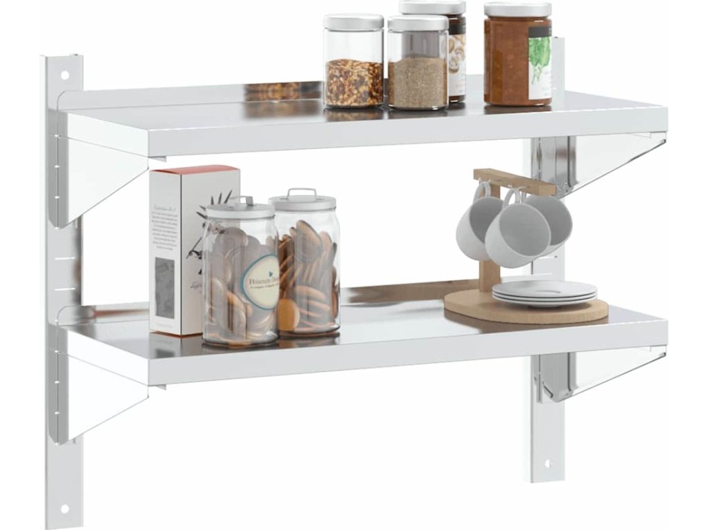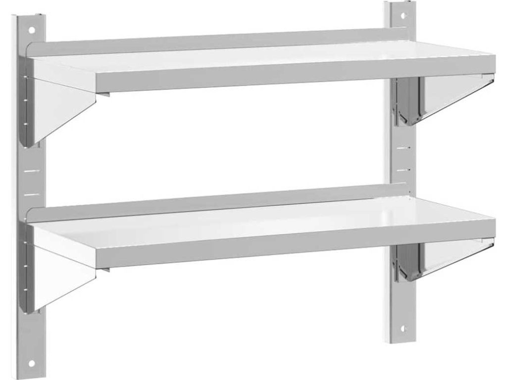 2patrová nástěnná police 75 x 30 x 60 cm stříbrná nerezová ocel [30313]