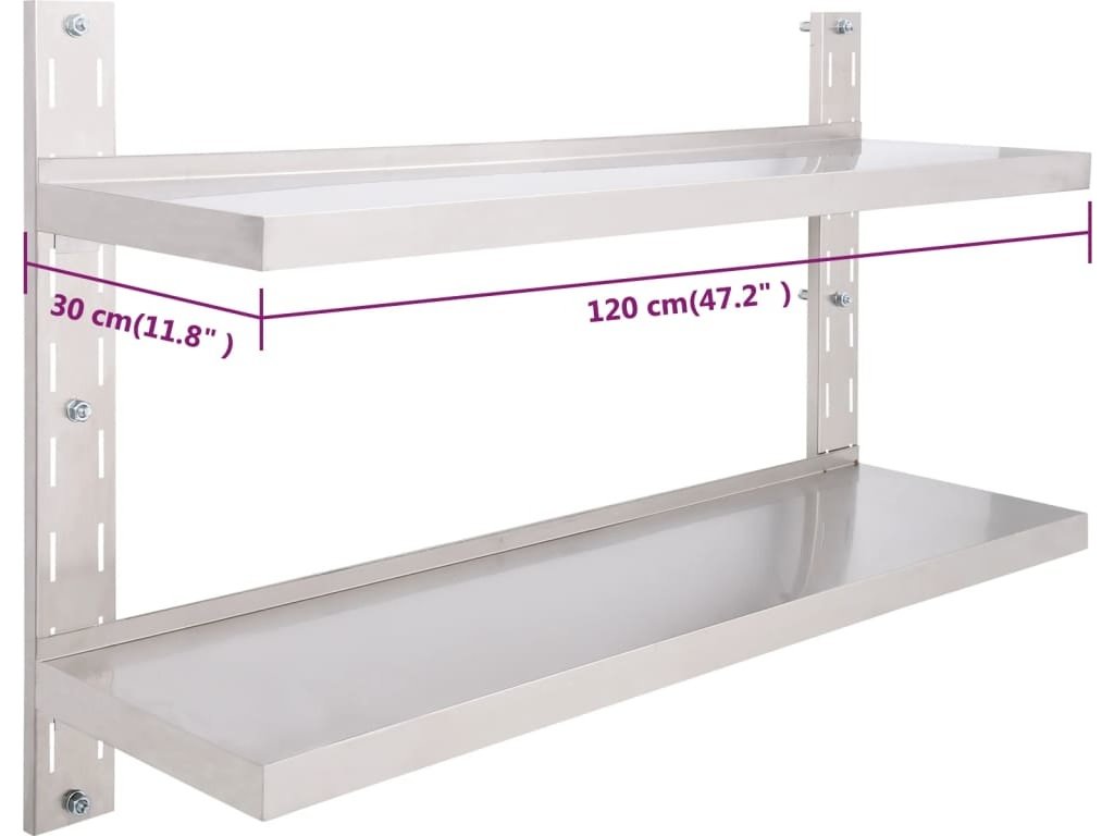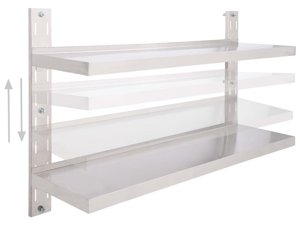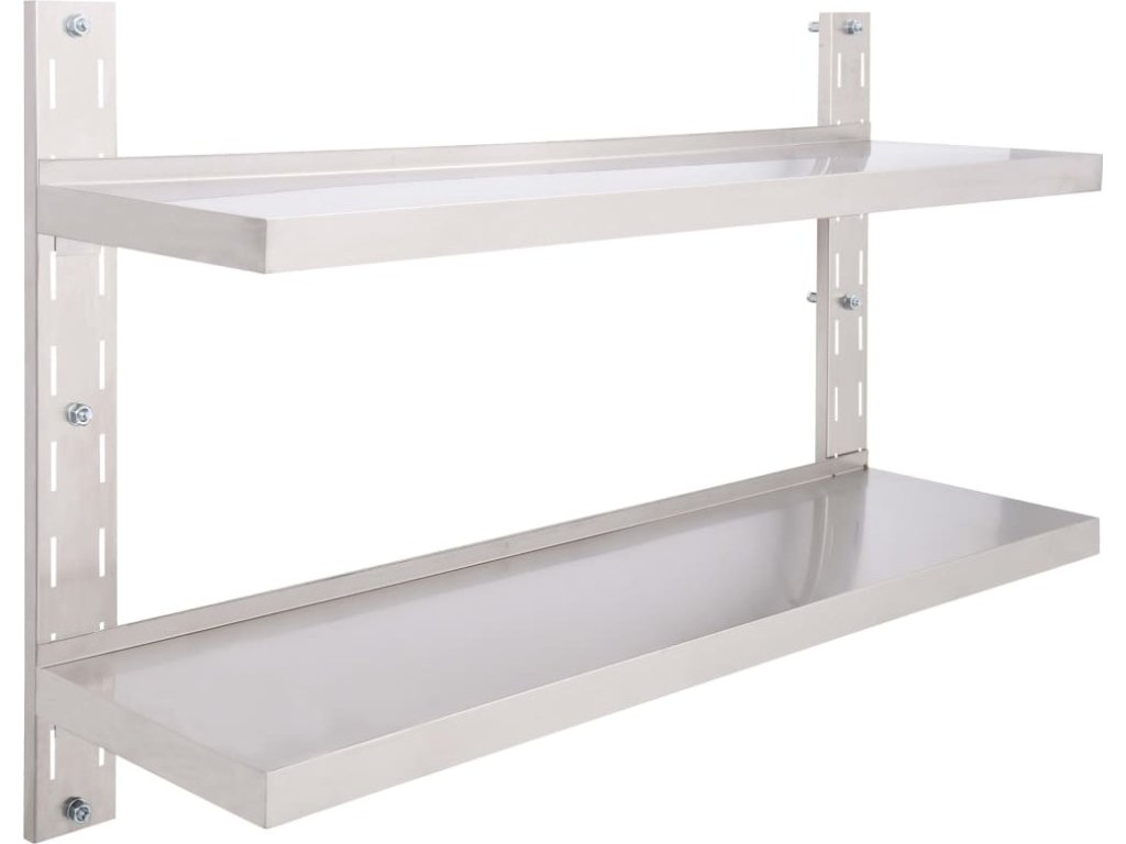 Naše 2patrová nástěnná police z nerezové oceli je nejen stylová, ale také velmi praktická a ideálně se hodí pro všechny, kdo potřebují v kuchyní více úložného prostoru. Nabízí perfektní úložné řešení pro talíře, nádobí či jiné kuchyňské náčiní.