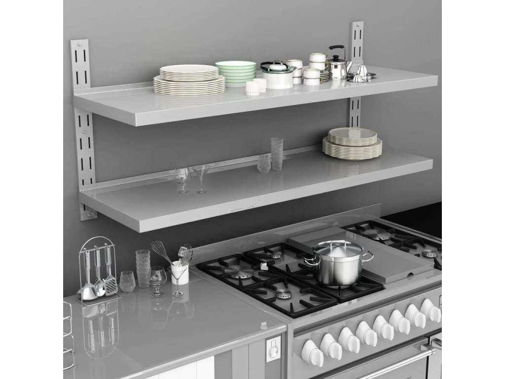 Naše 2patrová nástěnná police z nerezové oceli je nejen stylová, ale také velmi praktická a ideálně se hodí pro všechny, kdo potřebují v kuchyní více úložného prostoru. Nabízí perfektní úložné řešení pro talíře, nádobí či jiné kuchyňské náčiní.