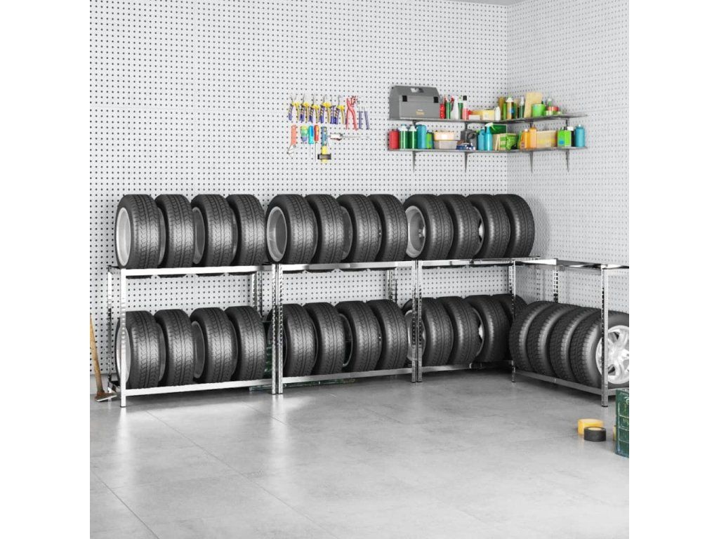 2patrové regály na pneumatiky 4 ks stříbrné 110x40x110 cm ocel [3154231]