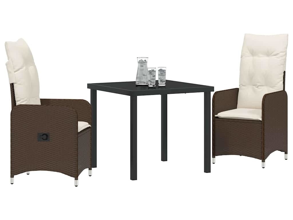 Zahradní jídelní souprava s polštářem 3 pcs Hnědá polyratan [3379639]