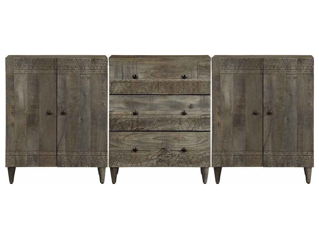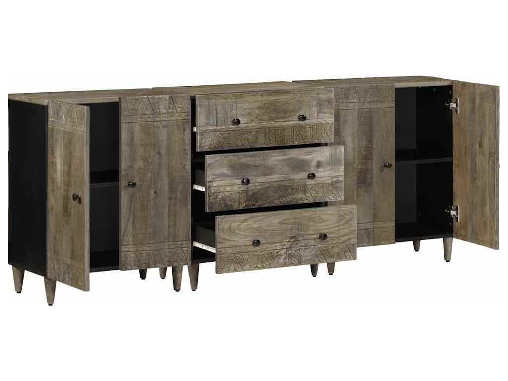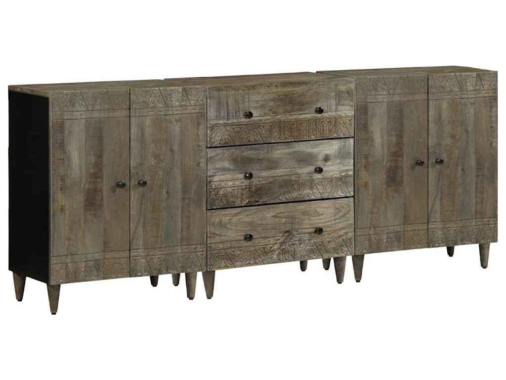 3 kusy příborníků Světle šedá 60x33,5x75 cm Masivní dřevo Mango [3310017]