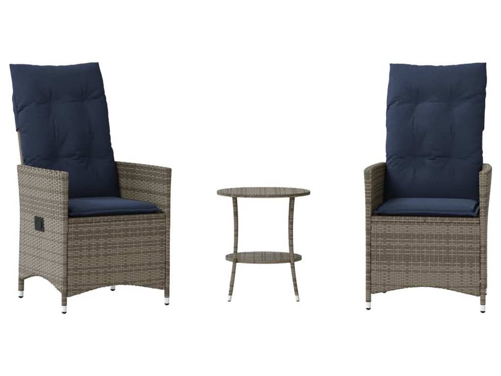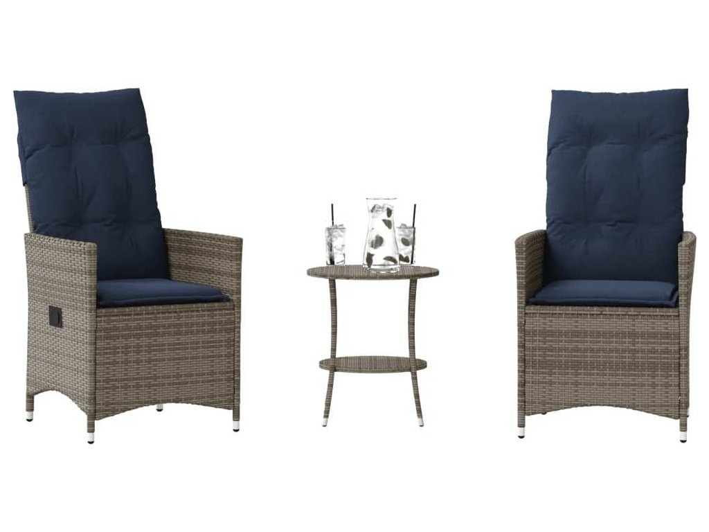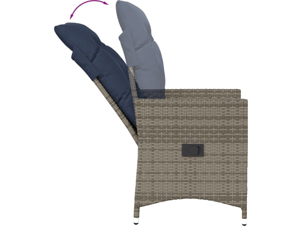 3dílná bistro sada s polštáři šedá polyratan [365656]