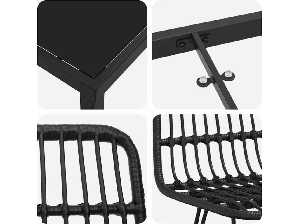 - Součásti: Kompletní set zahrnuje precizně navržený stůl a pohodlná sedadla, které celý vzhled sjednocují. Ocelové nohy dodávají stabilitu a odolnost. Každý kus je navržen tak, aby zvyšoval pohodlí při venkovním stolování a zábavě.