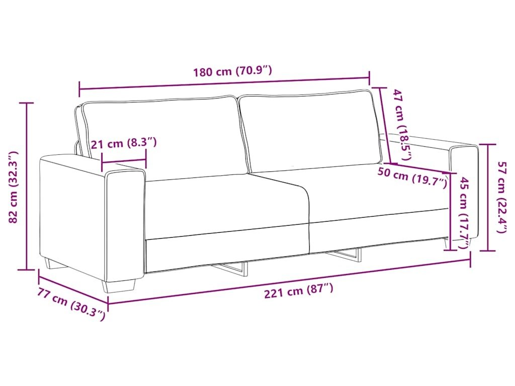 - Celkové rozměry: 221 x 77 x 82 cm (š x h x v)