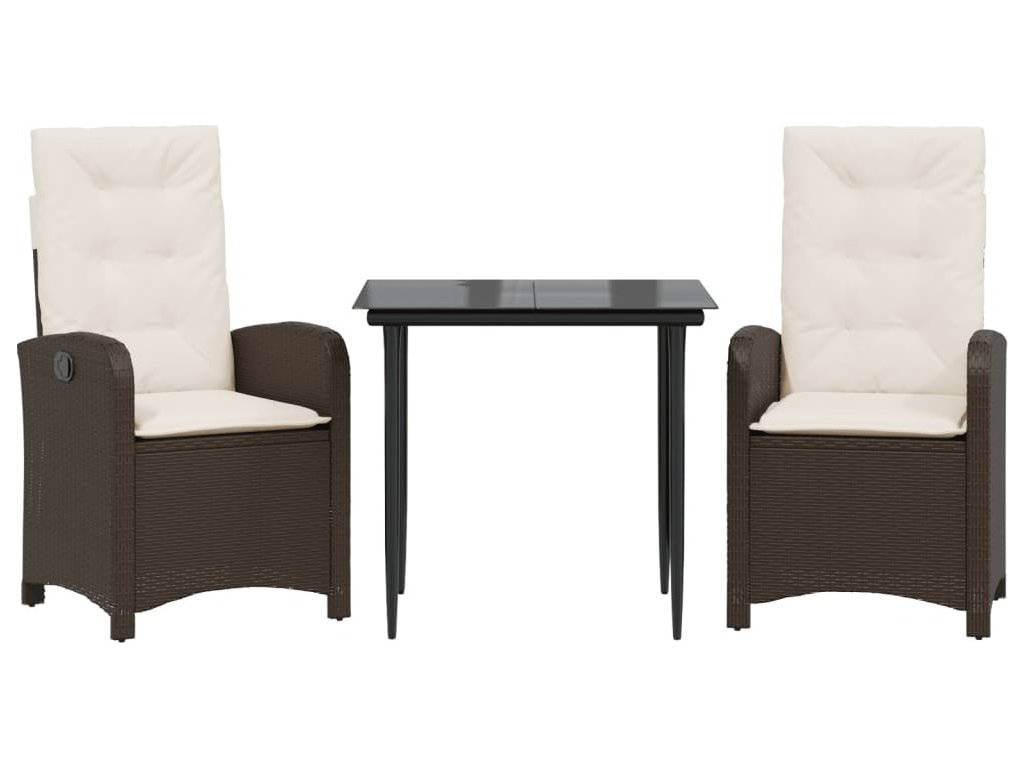 3dílná zahradní jídelní souprava s poduškami hnědá polyratan [3212330]