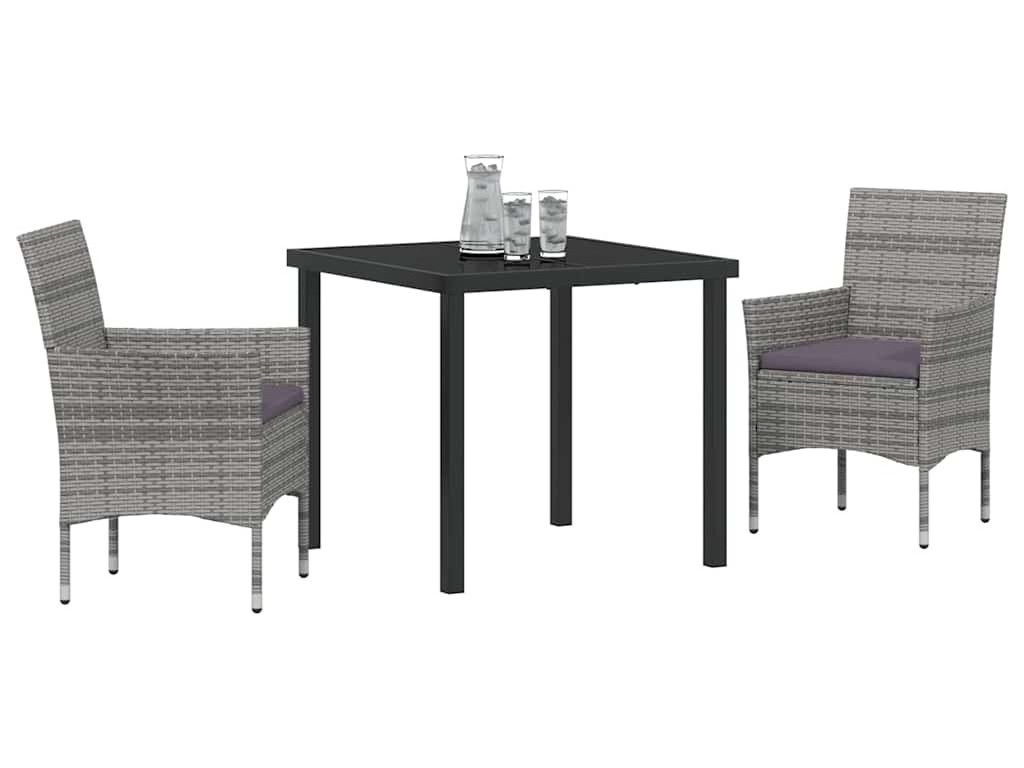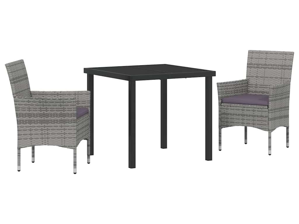 Zahradní jídelní souprava s polštářem 3 pcs Šedá polyratan [3379730]