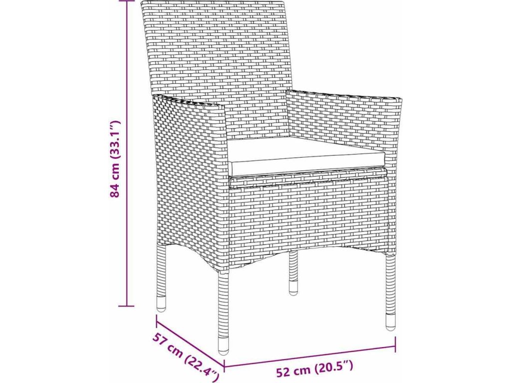 | 2 x Zahradní křeslo: | 52 x 57 x 84 cm (DxŠxV) |
