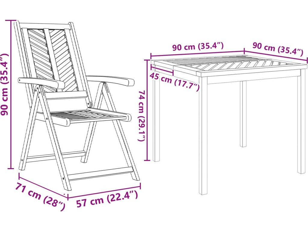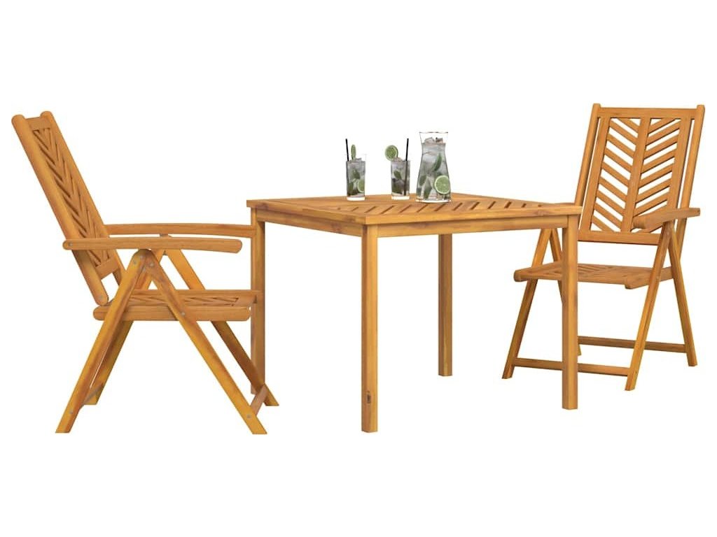- Součásti Jídelní sada obsahuje příjemně tvarovaná opěradla, ergonomické opěrky, robustní nohy a hladký povrch, což vytváří jednotný vzhled. Každý prvek je pečlivě sladěn do bohatého hnědého odstínu pro moderní estetiku a masivní akáciové dřevo zaručuje sílu a stabilitu pro maximální pohodlí při venkovních jídlech.