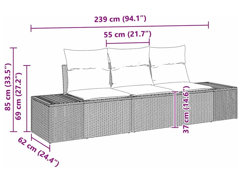 - Silný ocelový rám: Zpevněný práškově lakovaným ocelovým rámem, tahle pohovková sada je postavená, aby vydržela. Zvyšuje stabilitu a konstrukci, takže zvládne pravidelné používání bez ztráty krásy. Robustní rám zajišťuje, že se sada lehce manipuluje ve vašem venkovním prostoru.
