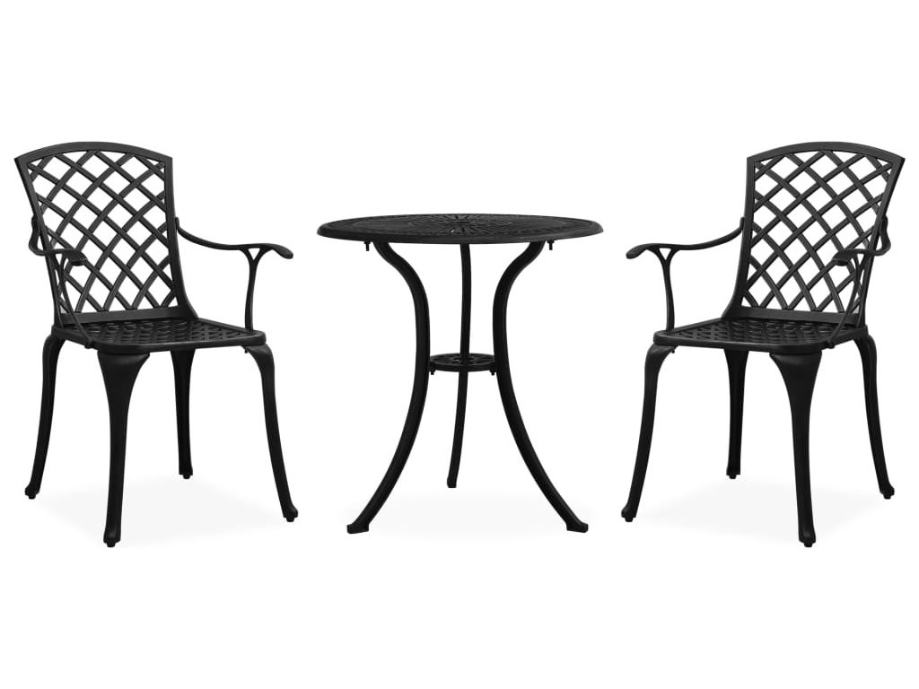 Stůl i židle jsou vyrobené z klimaticky odolného litého hliníku, takže vám vydrží sloužit dlouhá léta. Židle mají navíc vysoká opěradla a sedadla s mřížkovým designem. Ruce si můžete pohodlně opřít o ergonomicky tvarované područky. Pevná stolní deska je zdobená překrásnými vzory a skvěle se hodí k pokládání nápojů, občerstvení a dalších potřeb. Zahradní bistro set je jako dělaný pro pozdní snídaně nebo dlouhé odpolední konverzace.