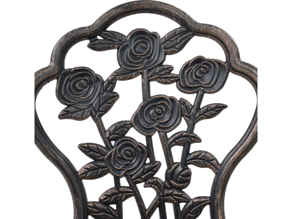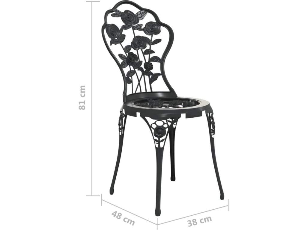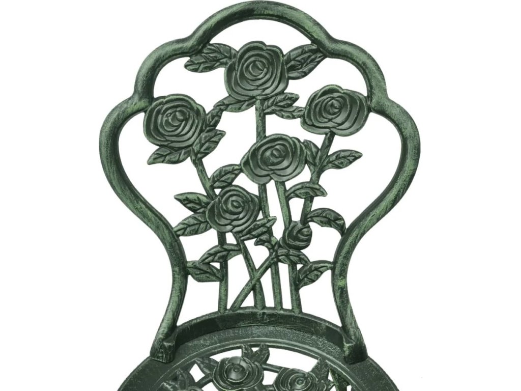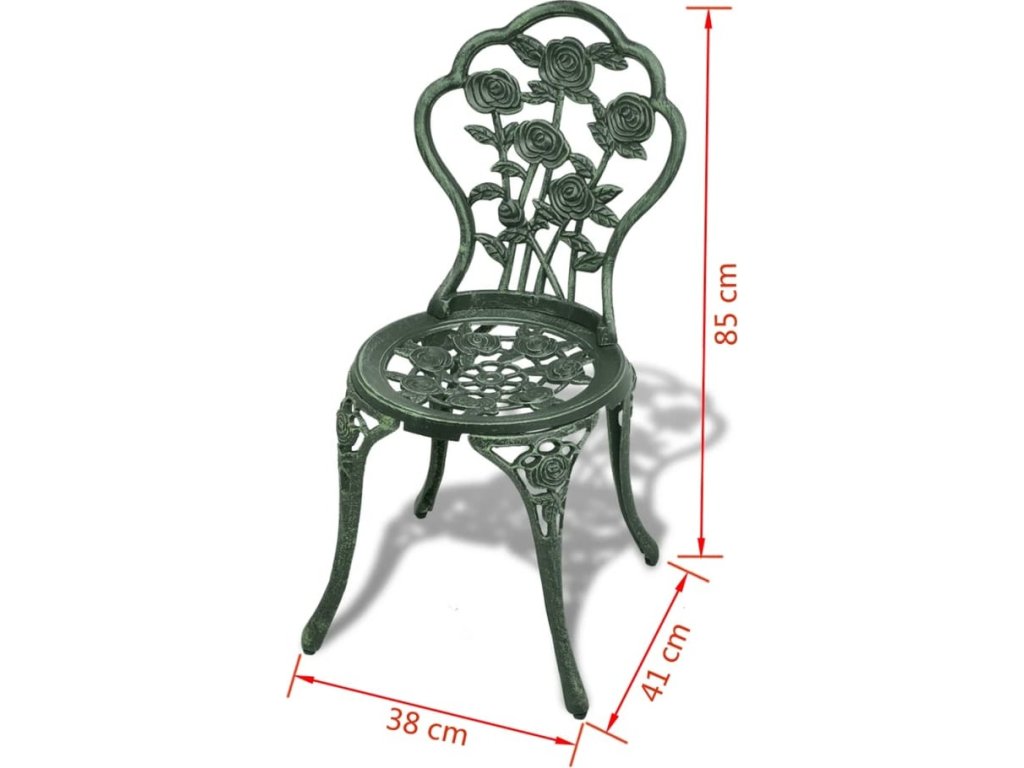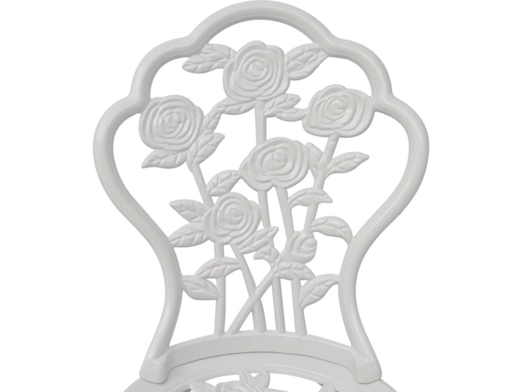 Zahradní stolek a židle jsou vyrobené z vysoce odolného litého hliníku, který je odolný vůči povětrnostním vlivům a má dlouhou životnost. Litinové nohy dodávají nábytku na robustnosti. Do detailu propracovaný květinový vzor oživí každou zahradu, dvůr či zimní zahradu romantickým nádechem.