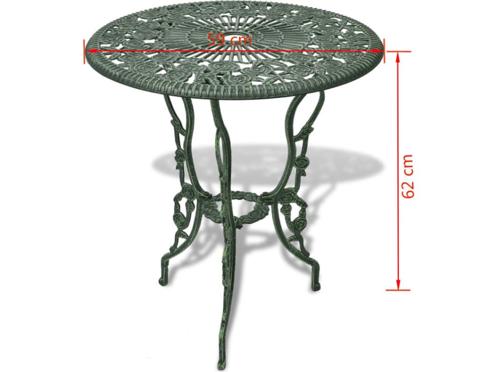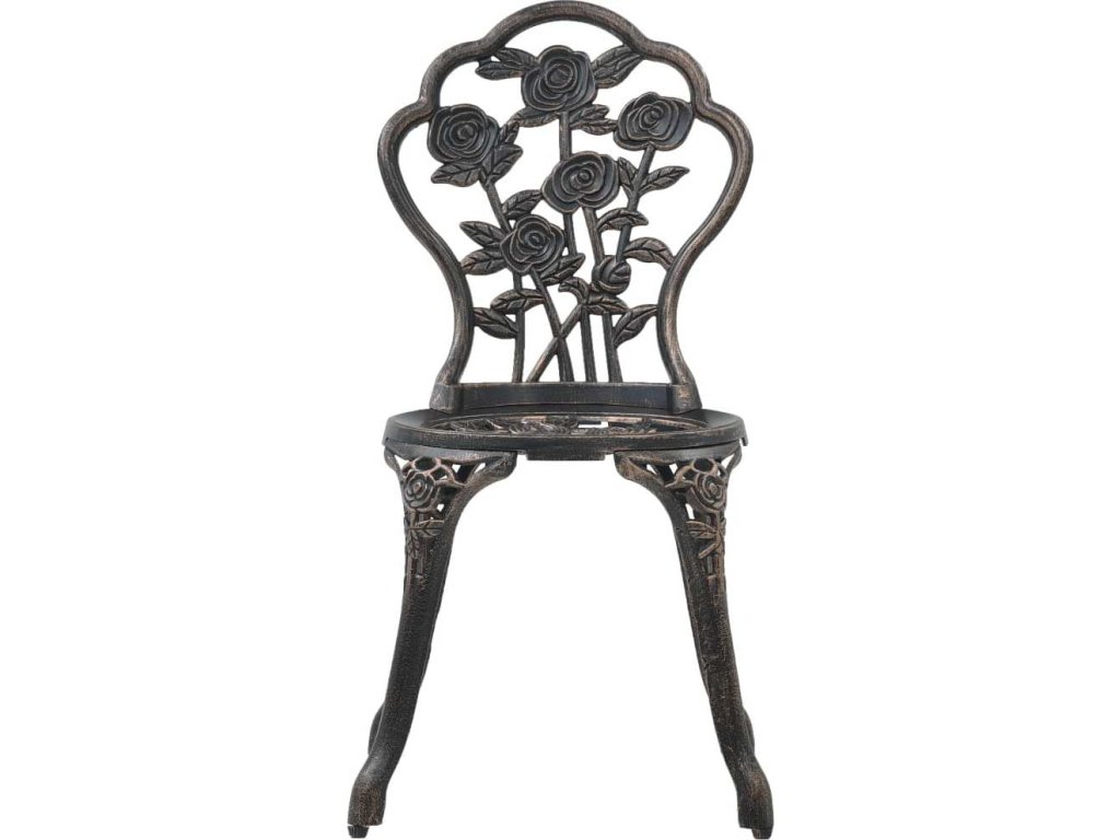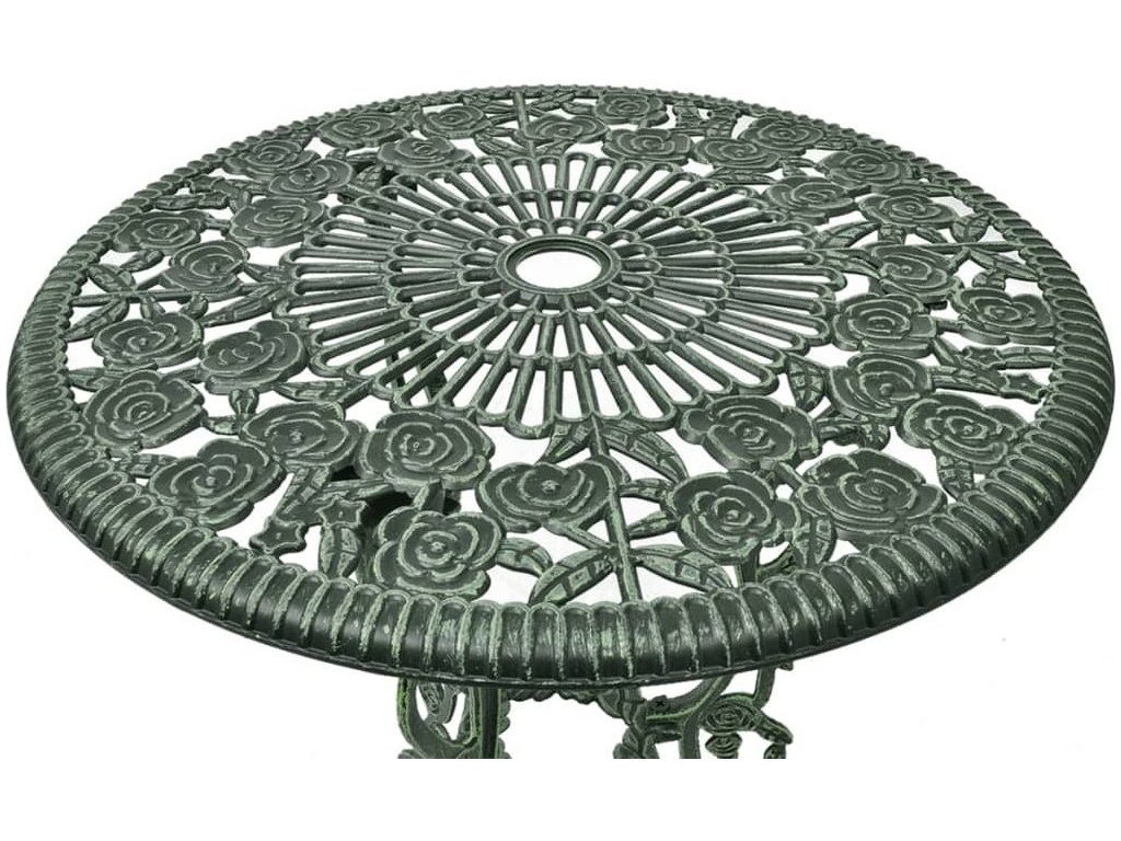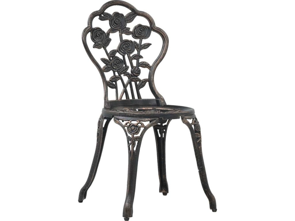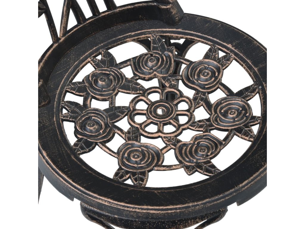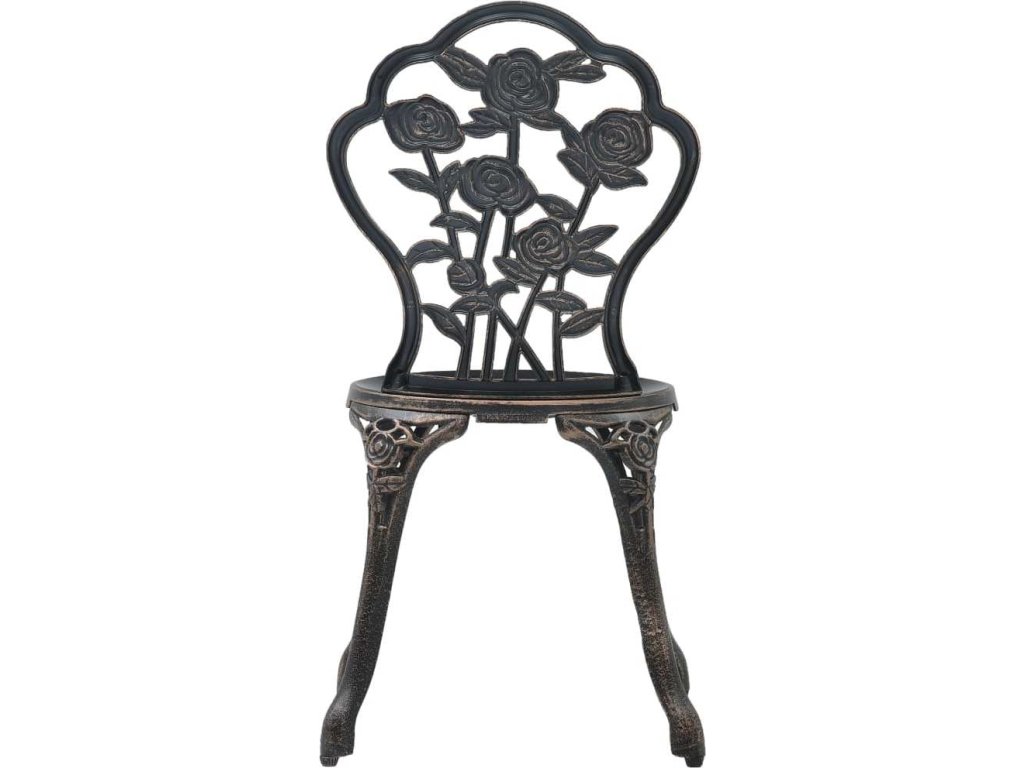 Zahradní stolek a židle jsou vyrobené z vysoce odolného litého hliníku, který je odolný vůči povětrnostním vlivům a má dlouhou životnost. Litinové nohy dodávají nábytku na robustnosti. Do detailu propracovaný květinový vzor oživí každou zahradu, dvůr či zimní zahradu romantickým nádechem.