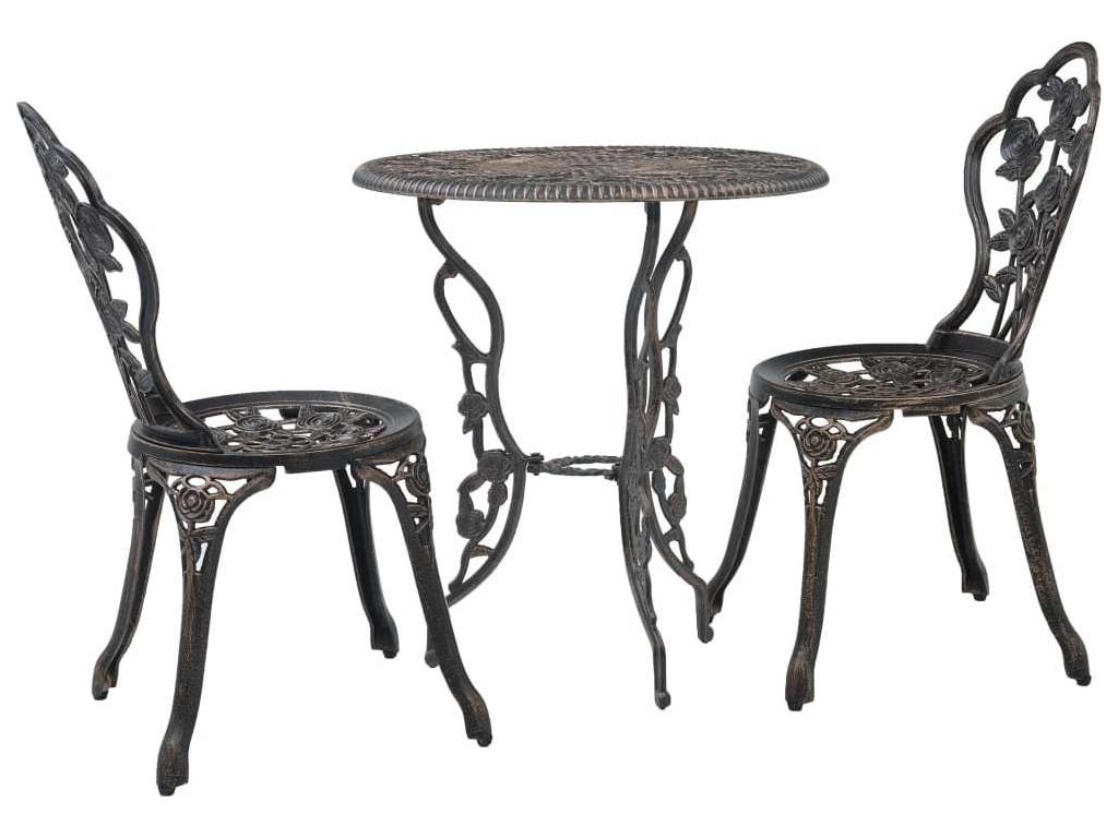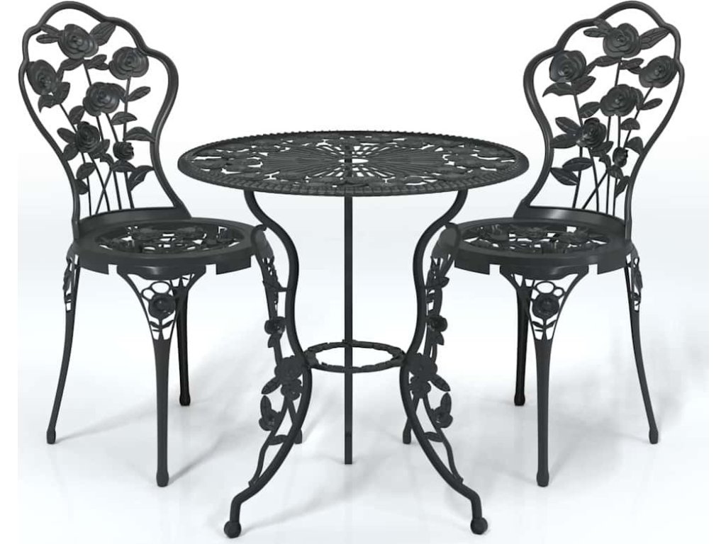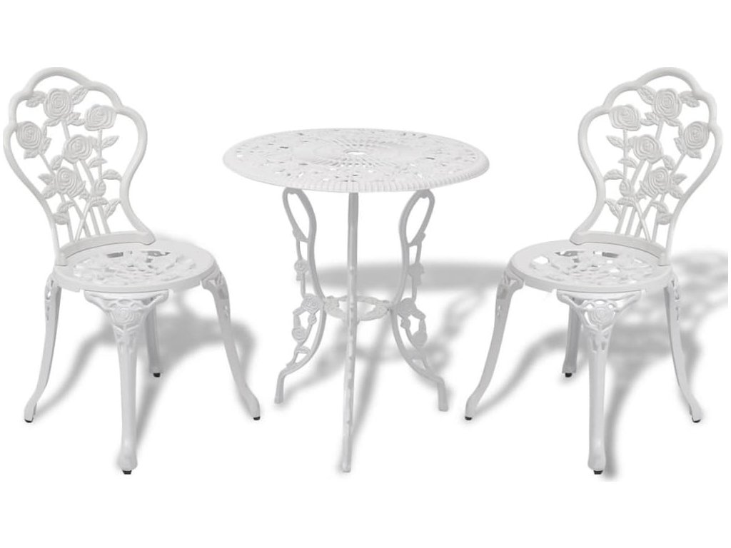 Tento bistro set z litého hliníku s elegantním designem tvoří 1 stolek a 2 židle. Postavte si ho na terasu nebo na balkon a užijte si stolování na čerstvém vzduchu. Uplatnit ho můžete také v komerčních barech a restauracích.