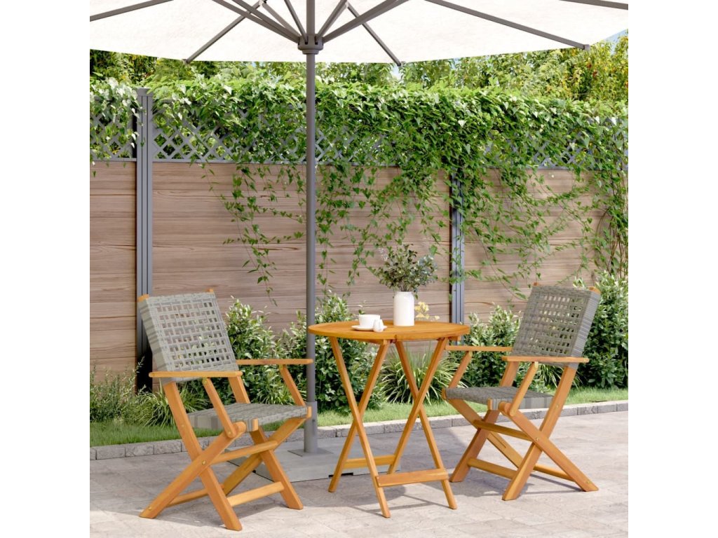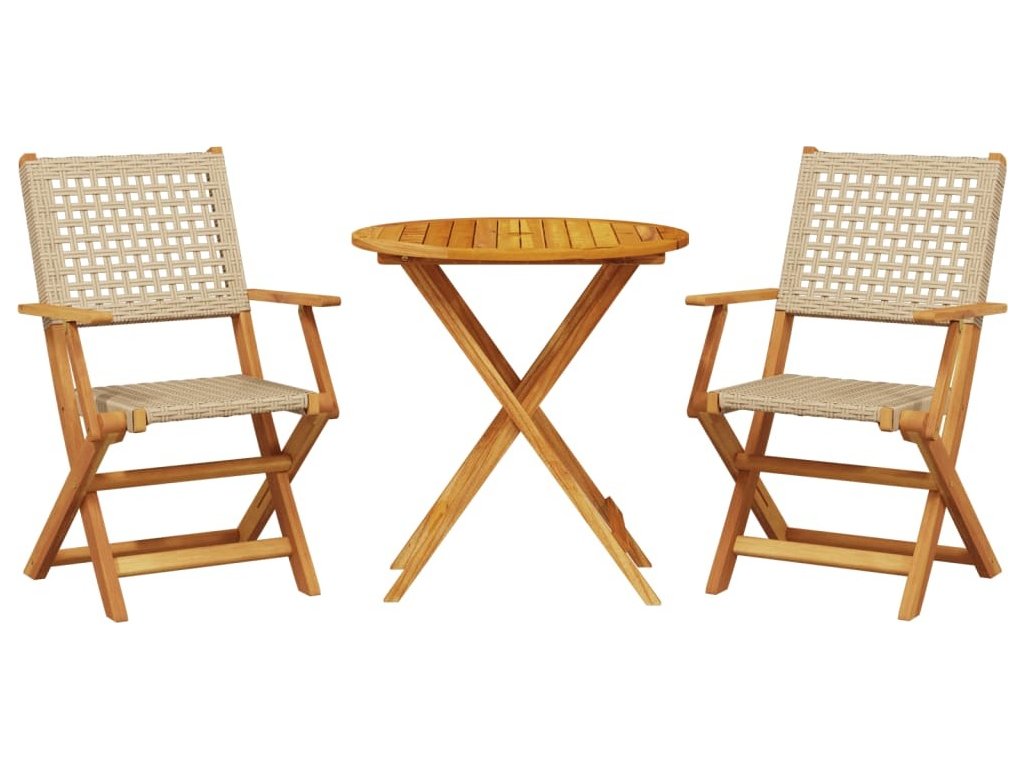 3dílný bistro set polyratan a masivní dřevo [3281850]