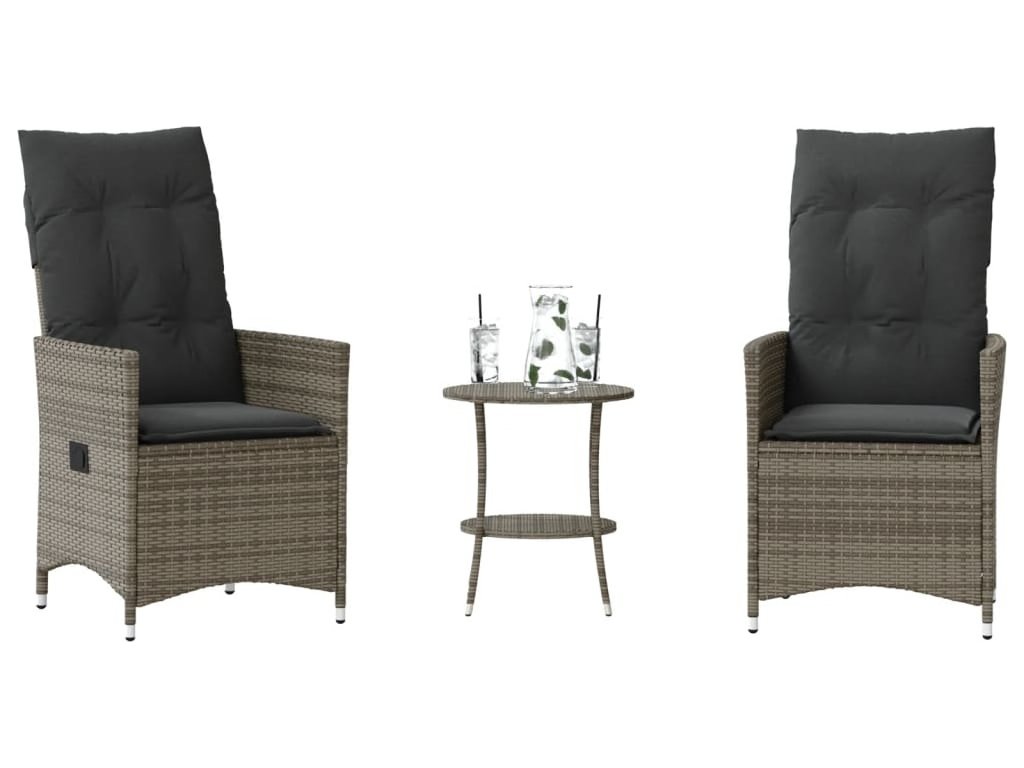 3dílný bistro set s poduškami polyratan [365654]