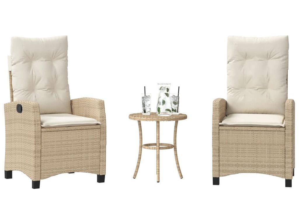 3dílný bistro set s poduškami světle šedý polyratan [365224]