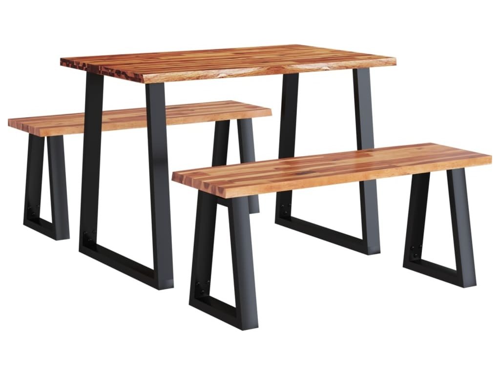3dílný jídelní set s živou hranou masivní akáciové dřevo [3157524]