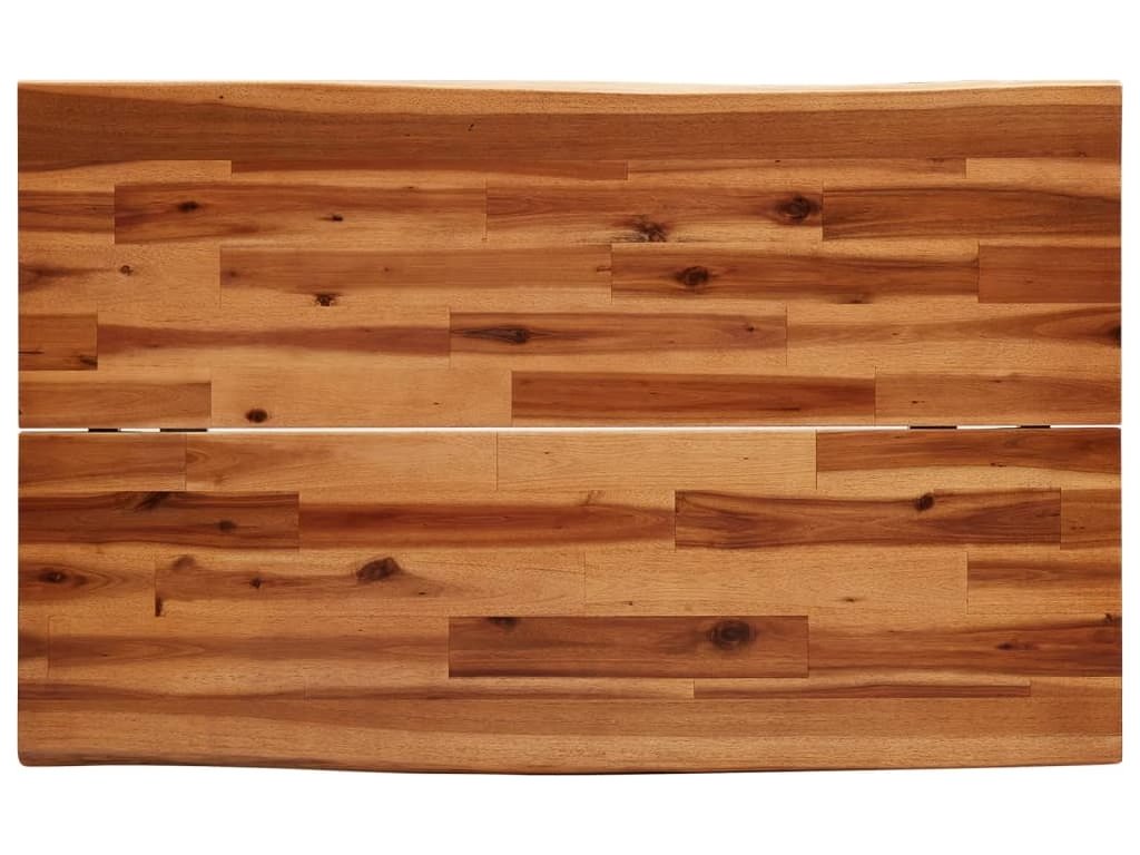 - Masivní akáciové dřevo: Sedák lavice a deska jídelního stolu jsou vyrobeny z masivního akáciového dřeva. Masivní akáciové dřevo je nádherný přírodní materiál. Akáciové dřevo je tropické tvrdé dřevo, které má hustou strukturu a je pevné a odolné.