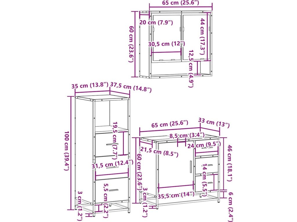 3dílný set koupelnového nábytku kompozitní dřevo [3301048]