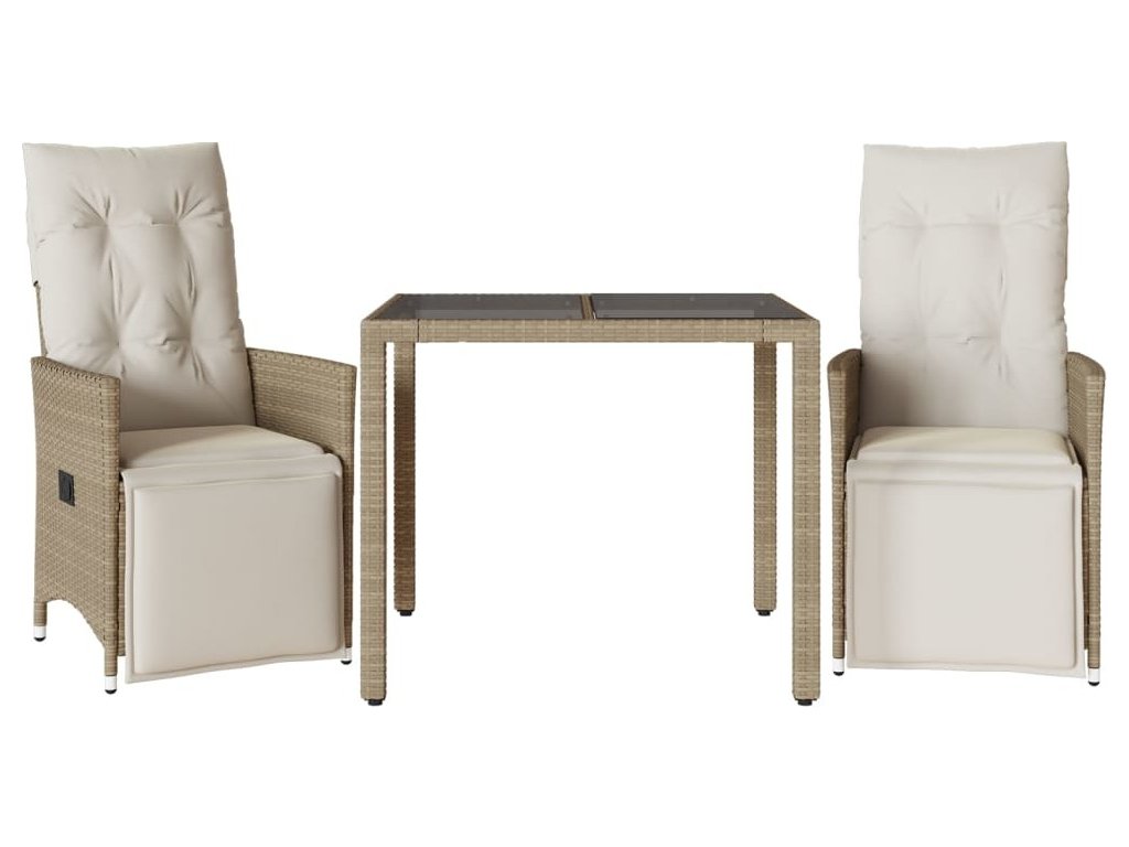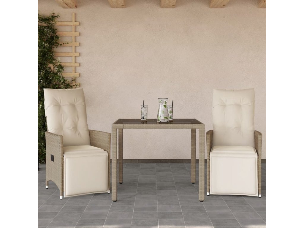 3dílný zahradní bistro set s poduškami béžový polyratan [3276937]