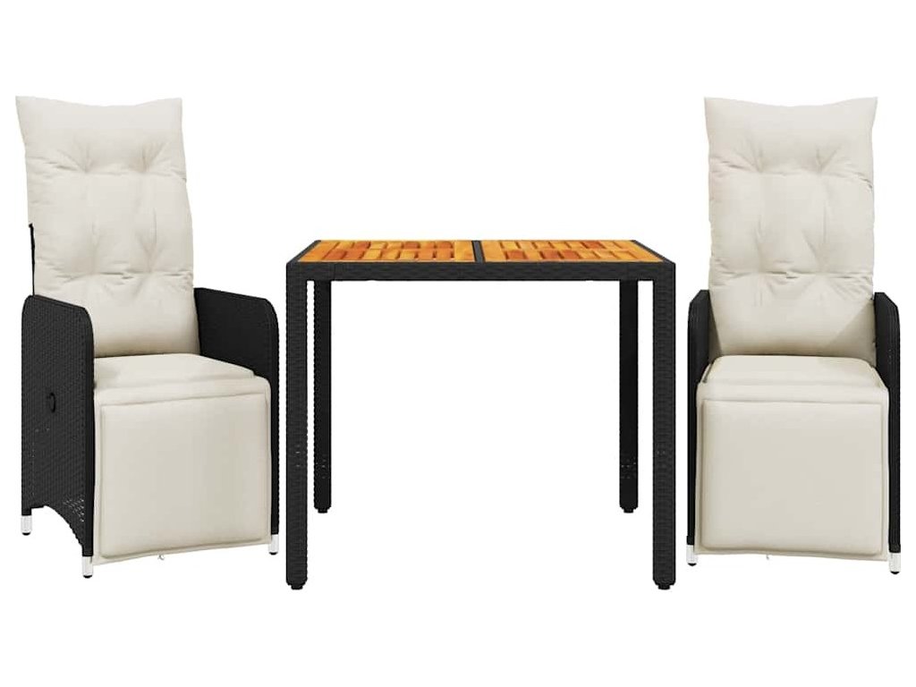 3dílný zahradní bistro set s poduškami černý polyratan [3277127]