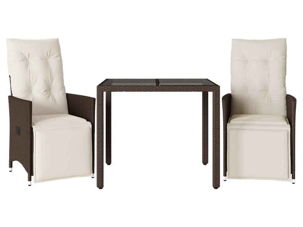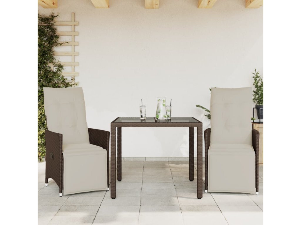 3dílný zahradní bistro set s poduškami hnědý polyratan [3276915]