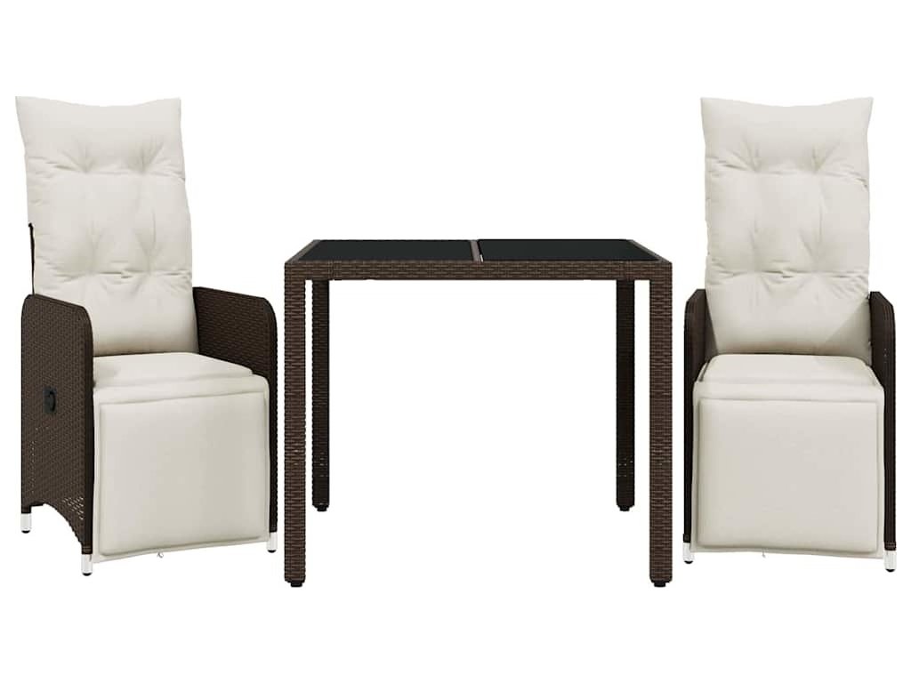 3dílný zahradní bistro set s poduškami hnědý polyratan [3277187]