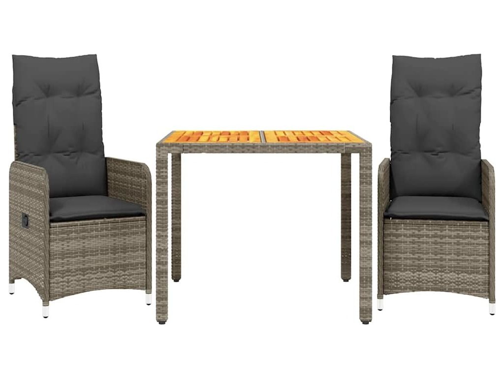3dílný zahradní bistro set s poduškami šedý polyratan [3277019]