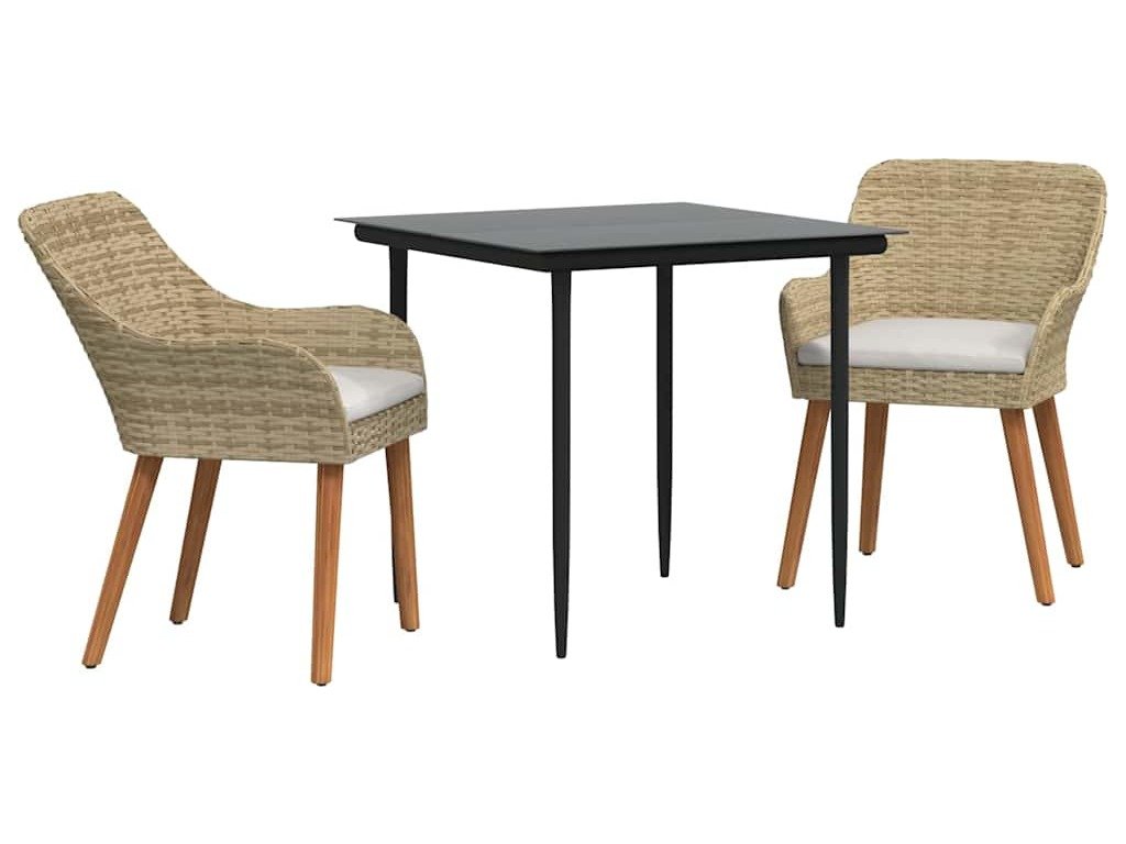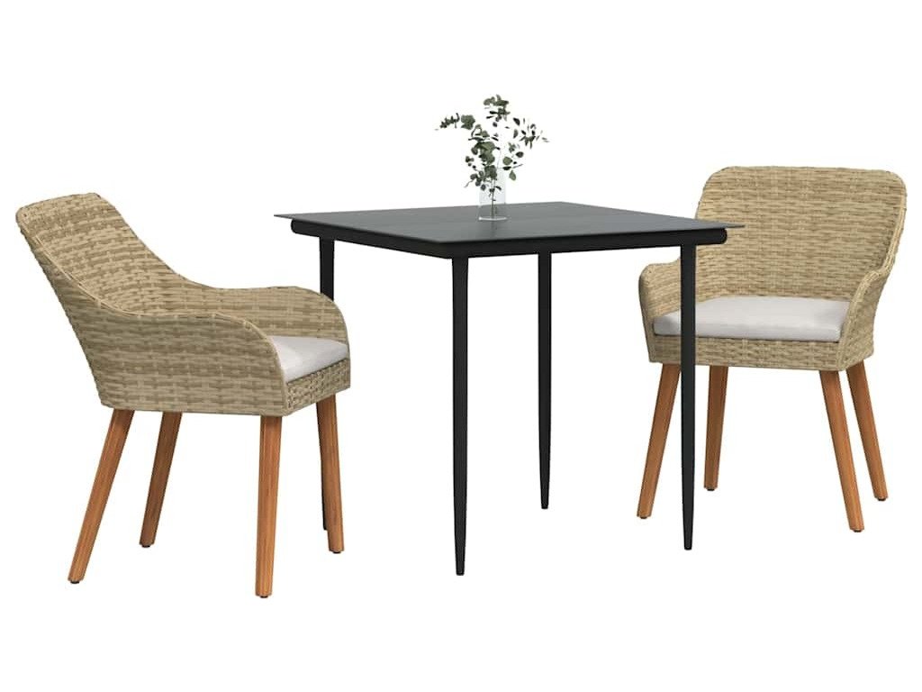 Zahradní jídelní souprava s polštářem 3 pcs Béžová polyratan [3261691]