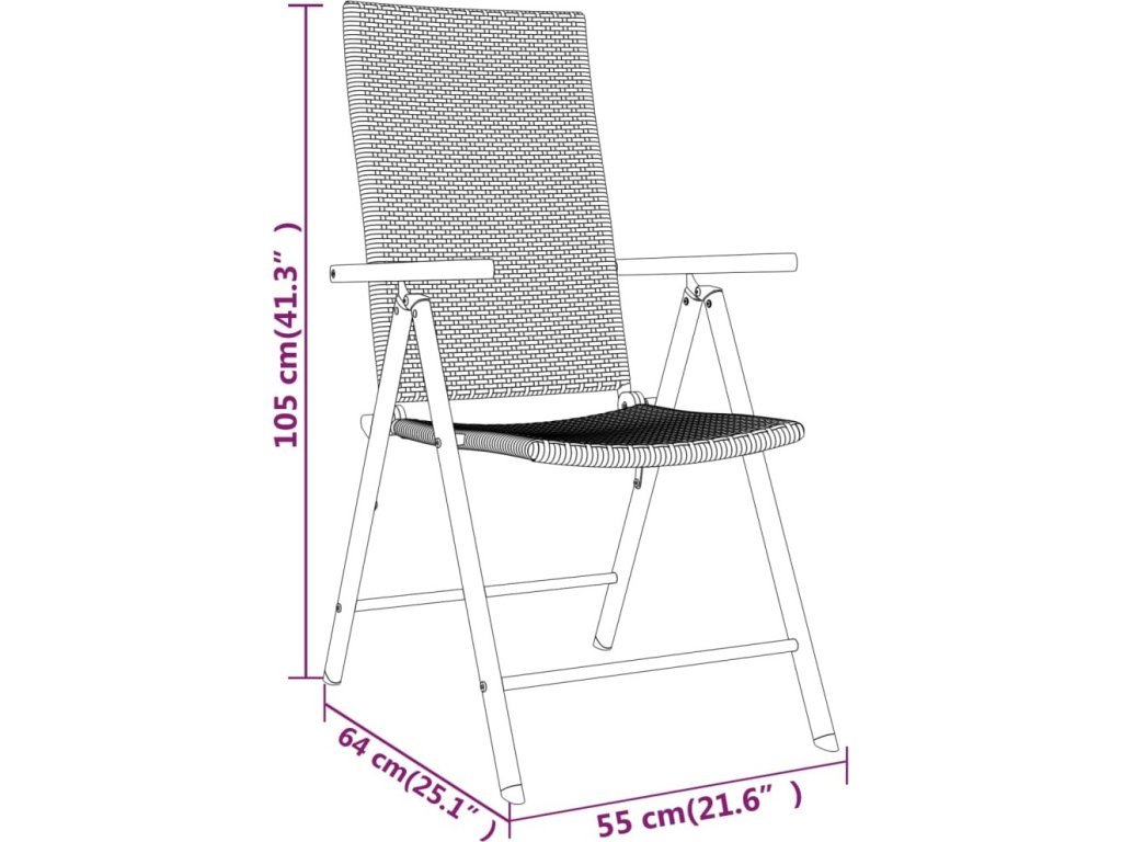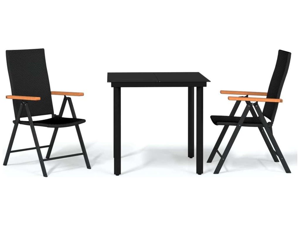 Zahradní jídelní stůl má práškově lakovaný ocelový rám, takže je robustní a stabilní a ideální pro venkovní použití. Hladká skleněná deska stolu se snadno čistí vlhkým hadříkem a skvěle vám poslouží k podávání jídla a pití nebo k vystavení různých dekorativních předmětů. Židle jsou vyrobené z PE ratanu, jsou proto lehké a voděodolné. Jejich opěradla lze navíc naklonit do 7 různých poloh, abyste si mohli vždy najít ten nejpohodlnější způsob sezení. Pokud židle zrovna nepoužíváte, můžete je složit, a ušetřit tak místo.