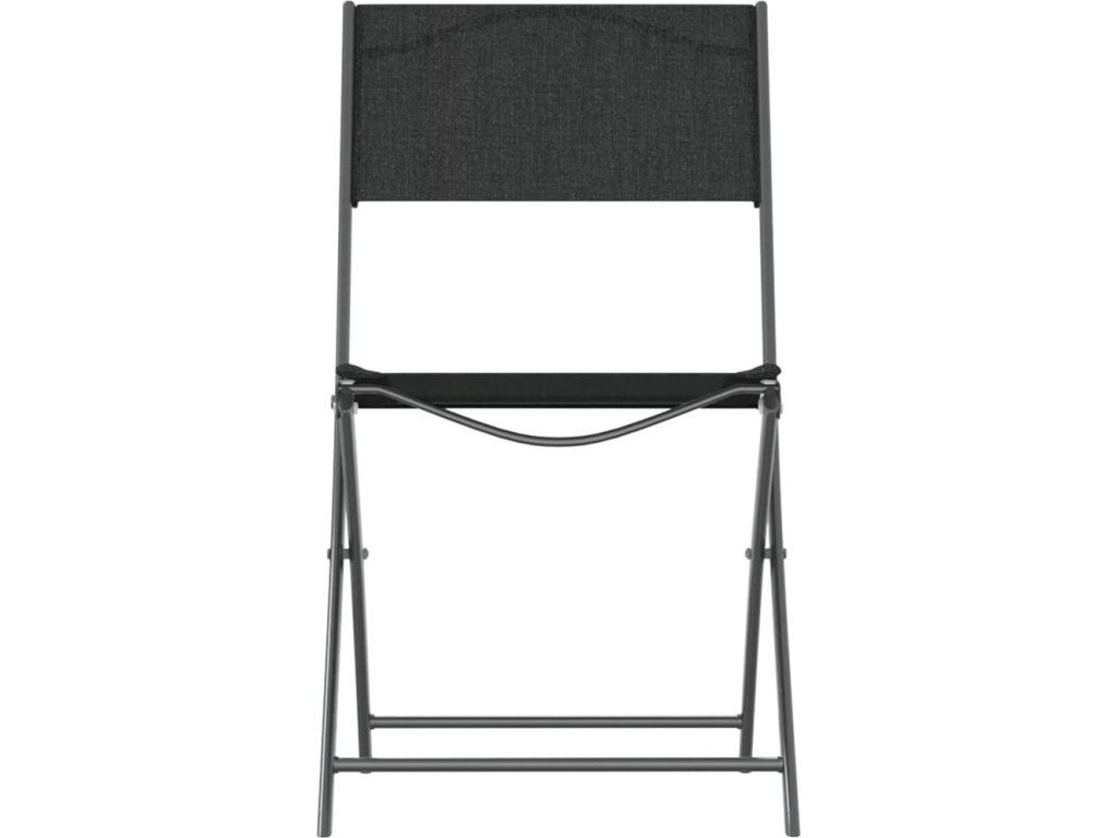 Skládací venkovní židle:Barva: černáMateriál: ocel s práškovým nástřikem, textilenová tkaninaRozměry: 45 x 54 x 86 cm (Š x H x V)Maximální nosnost (na sedák): 110 kgZahradní stůl:Barva: antracitováMateriál: ocel, skloRozměry: 50 x 71 cm (průměr x V)Montáž nutná: anoBalení obsahuje:2 x skládací venkovní židle1x zahradní stůl