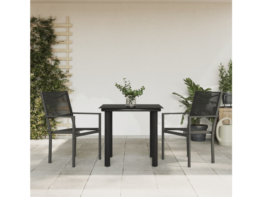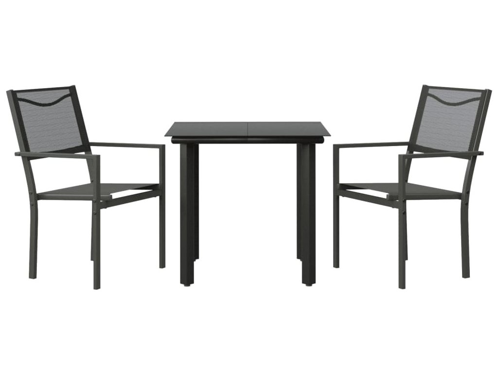 3dílný zahradní jídelní set černý ocel a textilen [3200726]