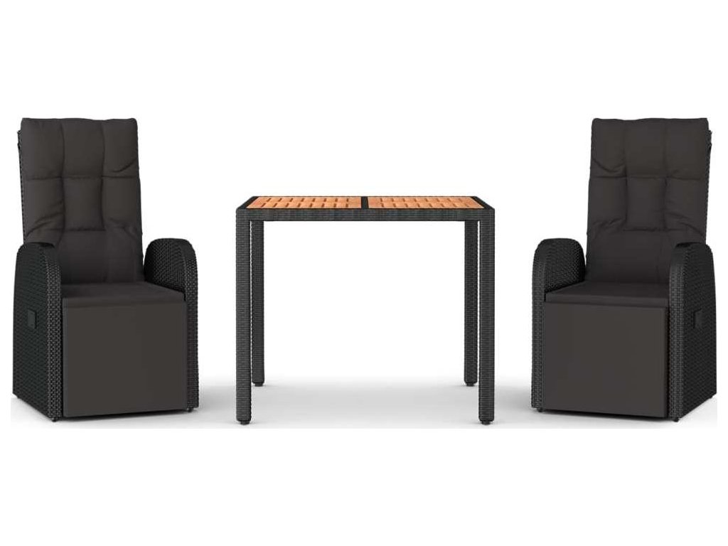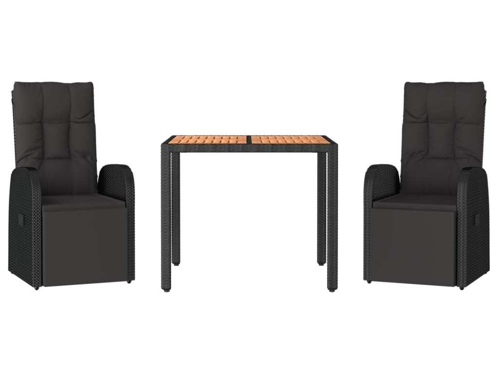 3dílný zahradní jídelní set černý polyratan a masivní akácie [3157606]