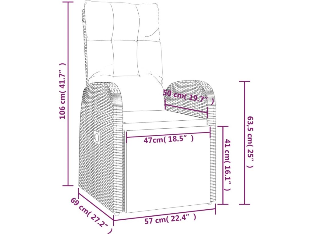 - Rozměry sezení: 57 x 69 x 106 cm (Š x H x V)