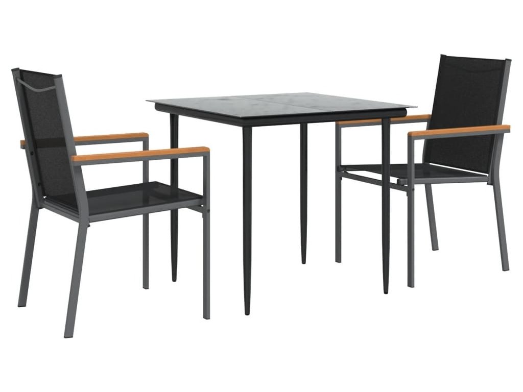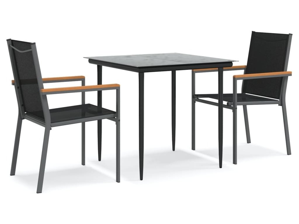 3dílný zahradní jídelní set černý textilen a ocel [3187033]