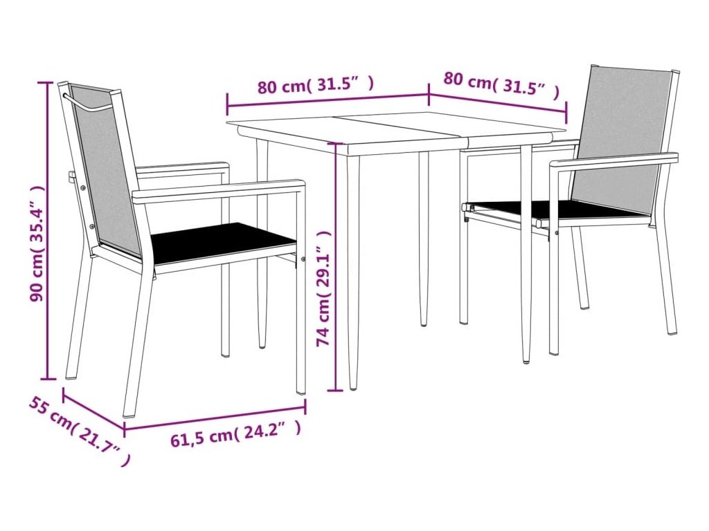 - Robustní a stabilní rám: Jelikož má ocelové rámy, je tento jídelní set robustní a stabilní pro každodenní venkovní použití.