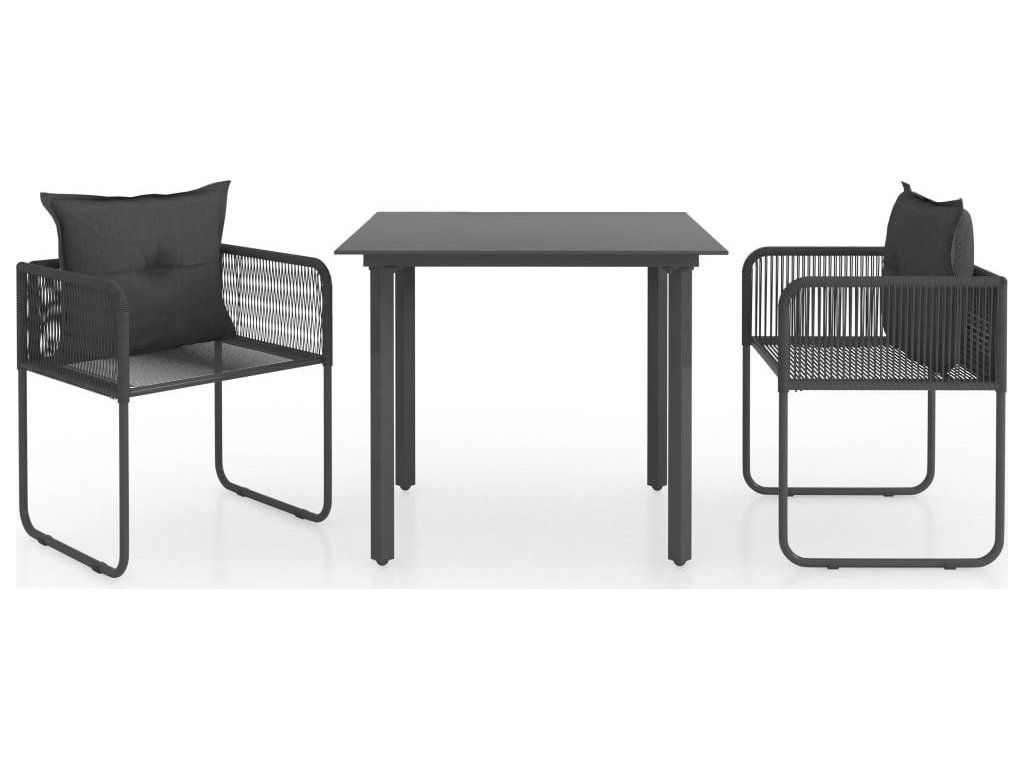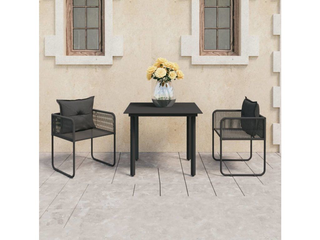 3dílný zahradní jídelní set PVC ratan černý [3060094]