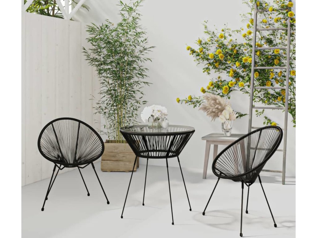 3dílný zahradní jídelní set PVC ratan černý [3060279]